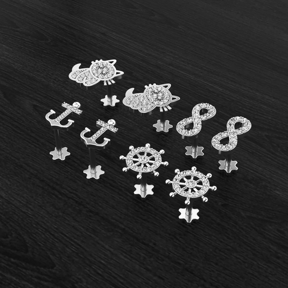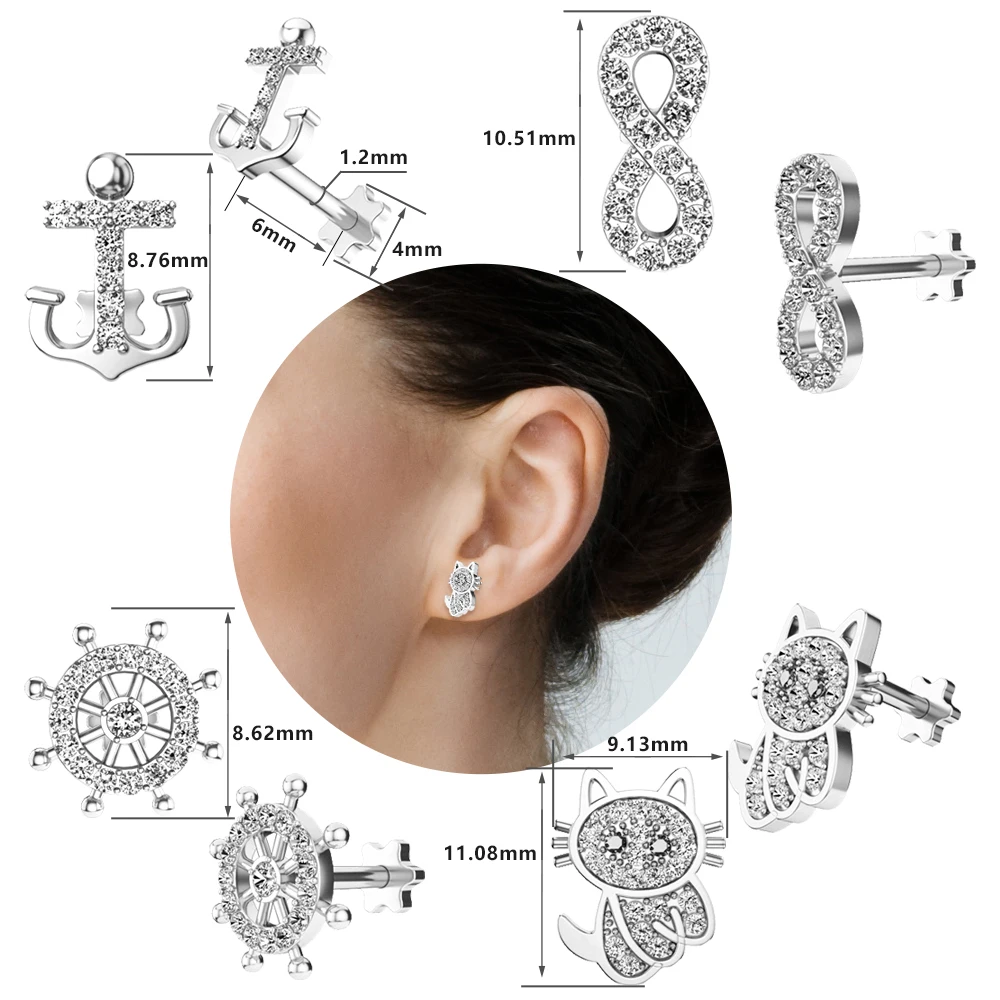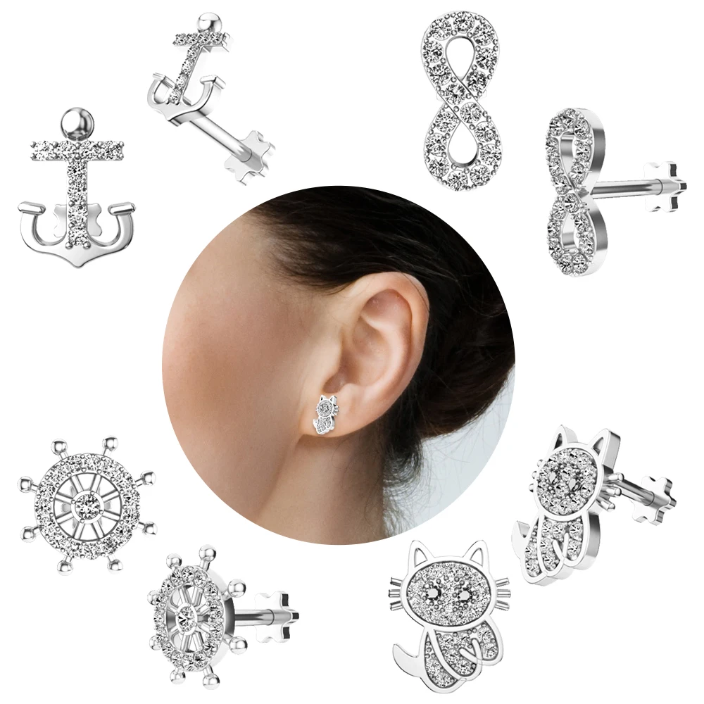 1 шт. циркония Cz Кат номер ухо шпильки серьги, Надеваемые На ушной хрящ для Для женщин Нержавеющаясталь с маленькими ушами и украшения для пирсинга пупка, шпильки 16G