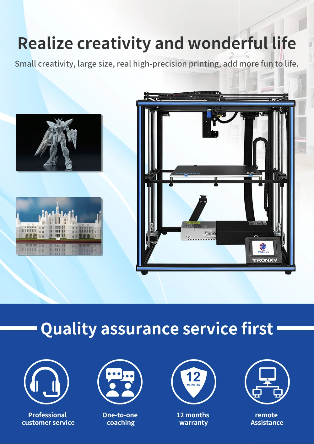 3D принтер TRONXY X5SA-400 PRO, большой размер печати 400*400*400 мм, OSG, двойная ось, внешняя направляющая, титановый экструдер, настольный DIY