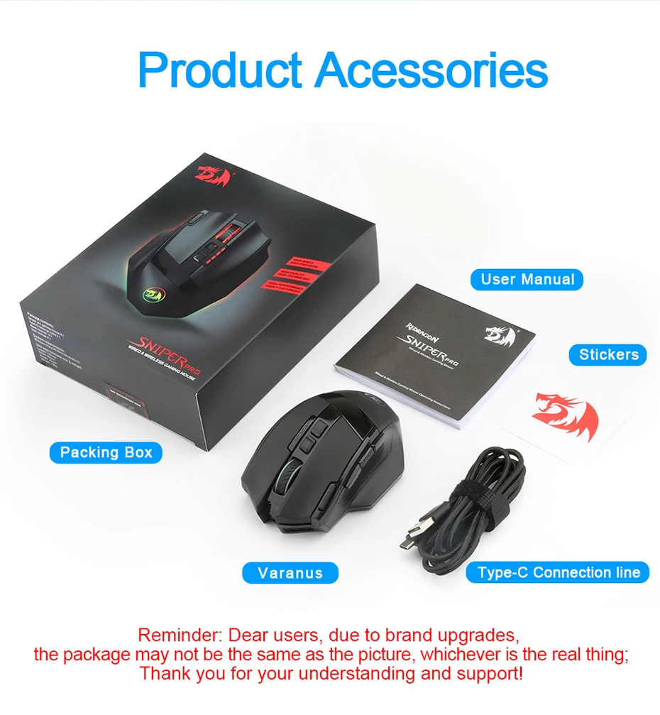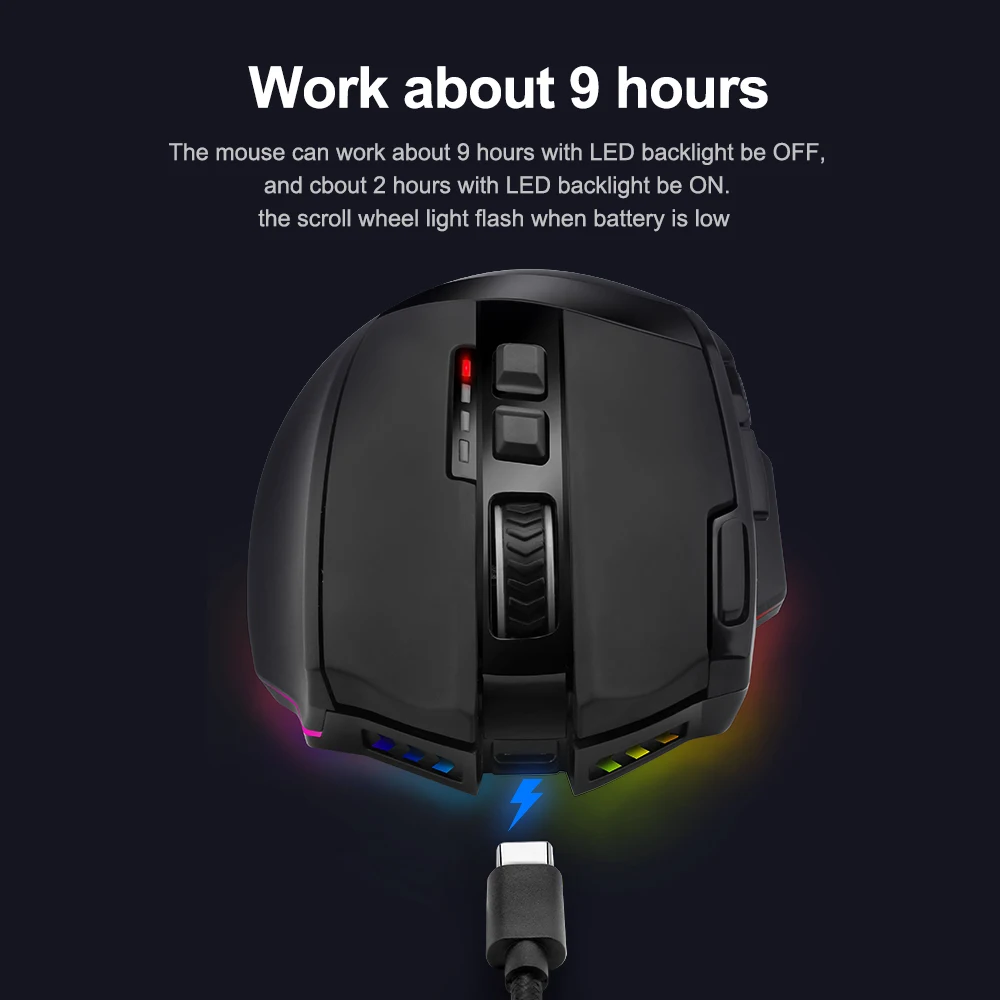 Беспроводная игровая мышь Redragon Sniper Pro M801P, RGB, USB, 2,4 ГГц, 16400DPI, 10 кнопок, программируемая эргономичная геймерская мышь для ноутбука и ПК