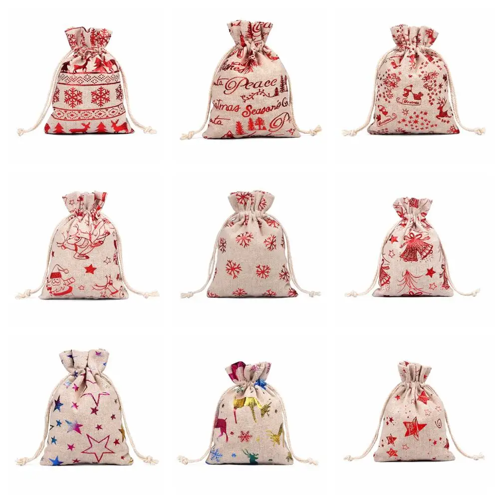 Рождественская сумка конфет с золотым тиснением, Льняная сумка для печенья, украшения, Рождественский кулон, Рождественская елка, подвесной декор, Детская сумка на подарок, предложение Noel