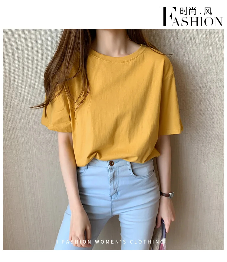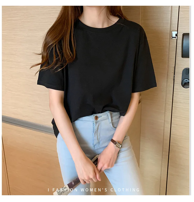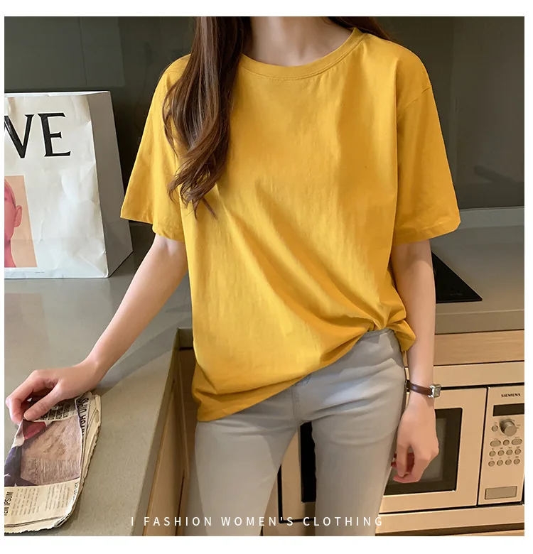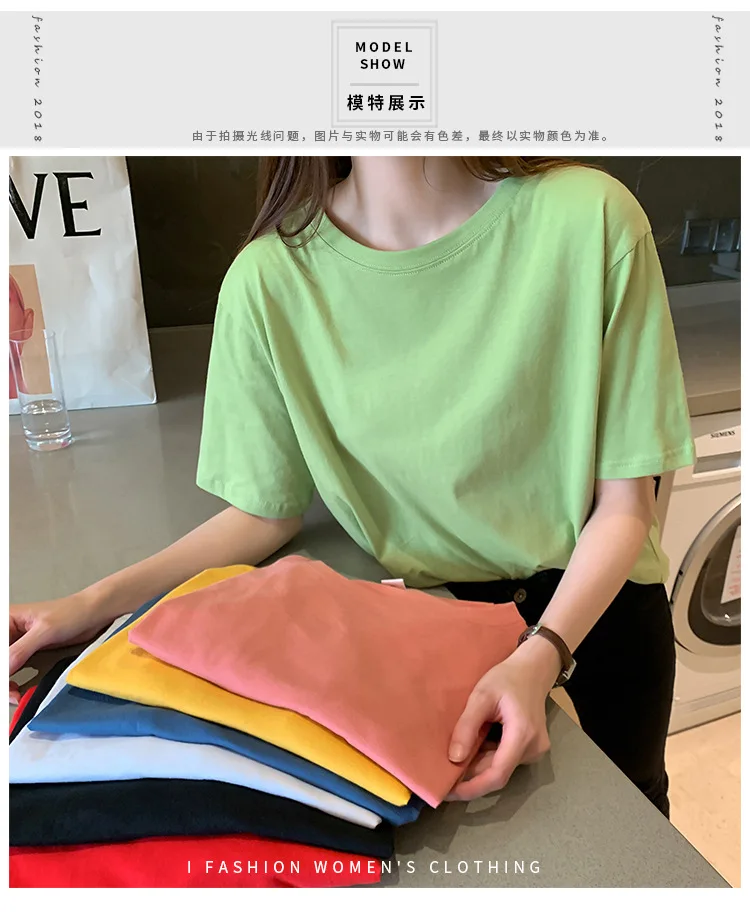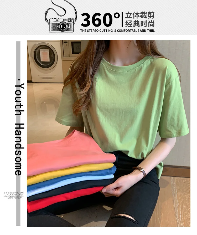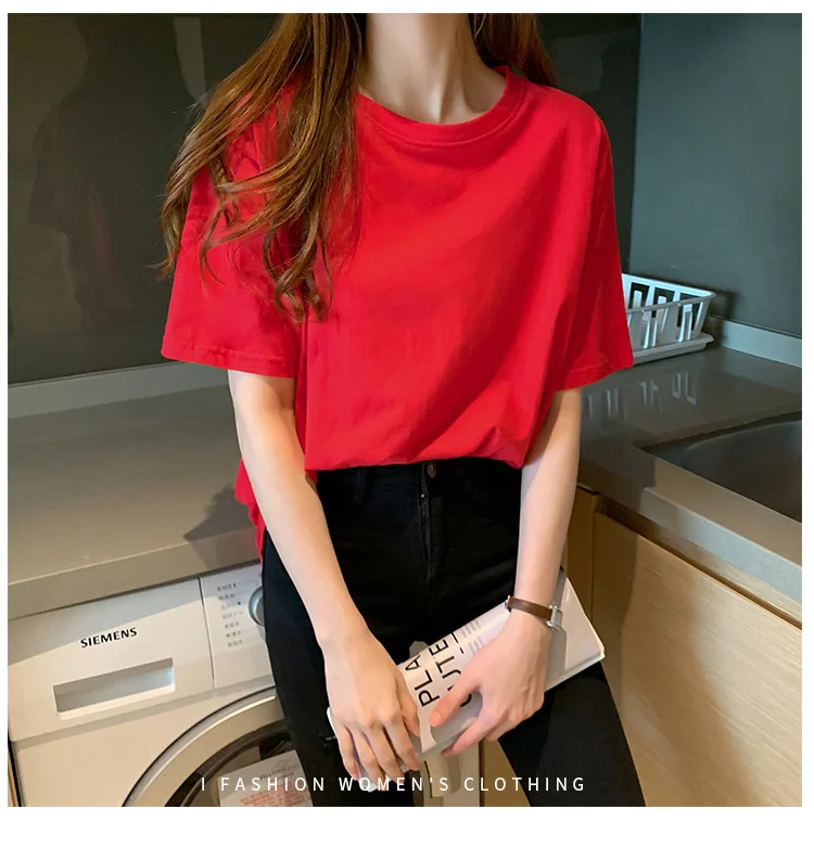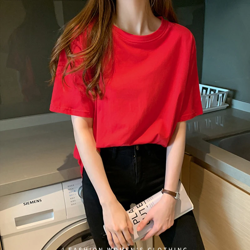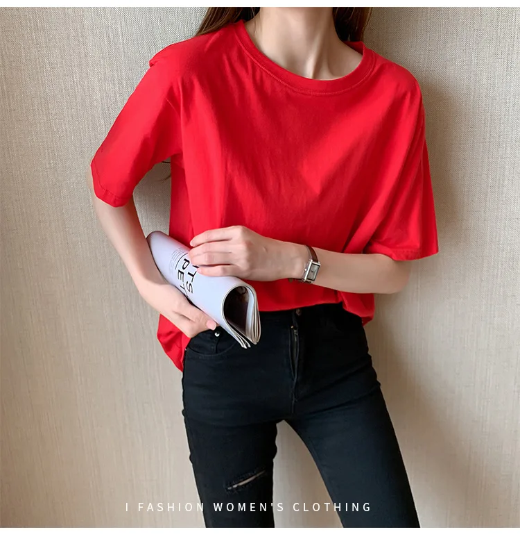 Футболка женская Базовая из чистого хлопка, базовая Однотонная рубашка, уличная одежда, красная летняя одежда, Прямая поставка