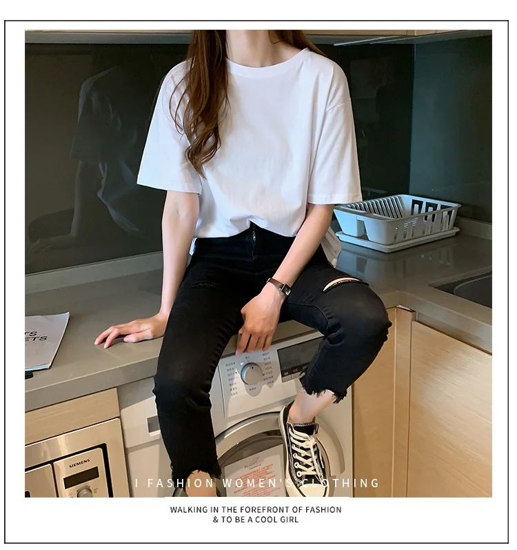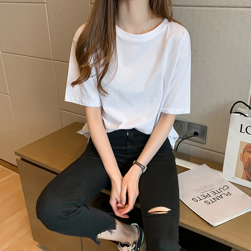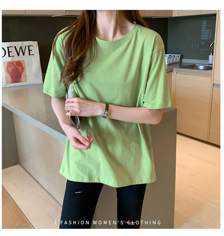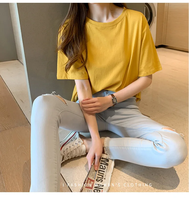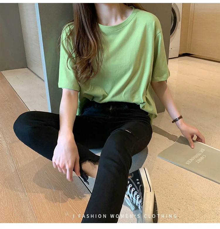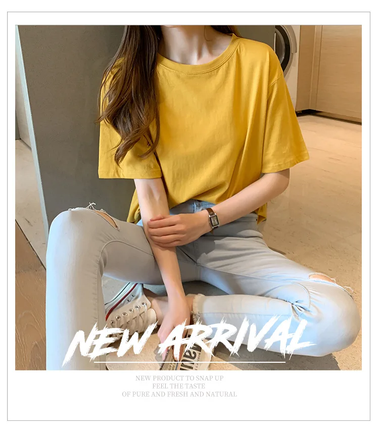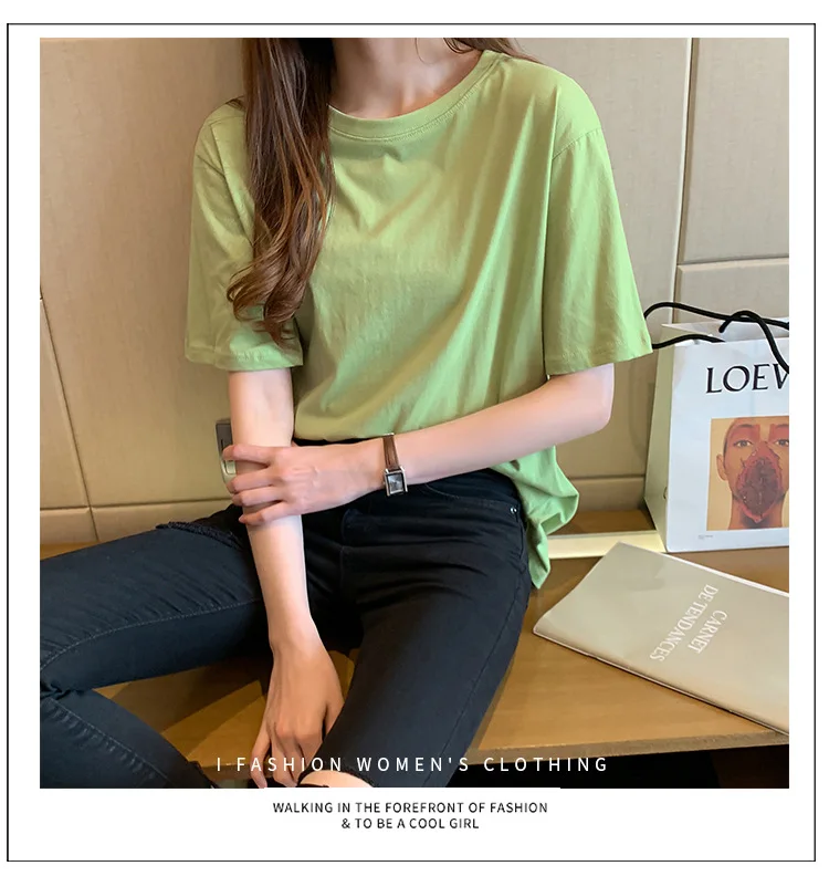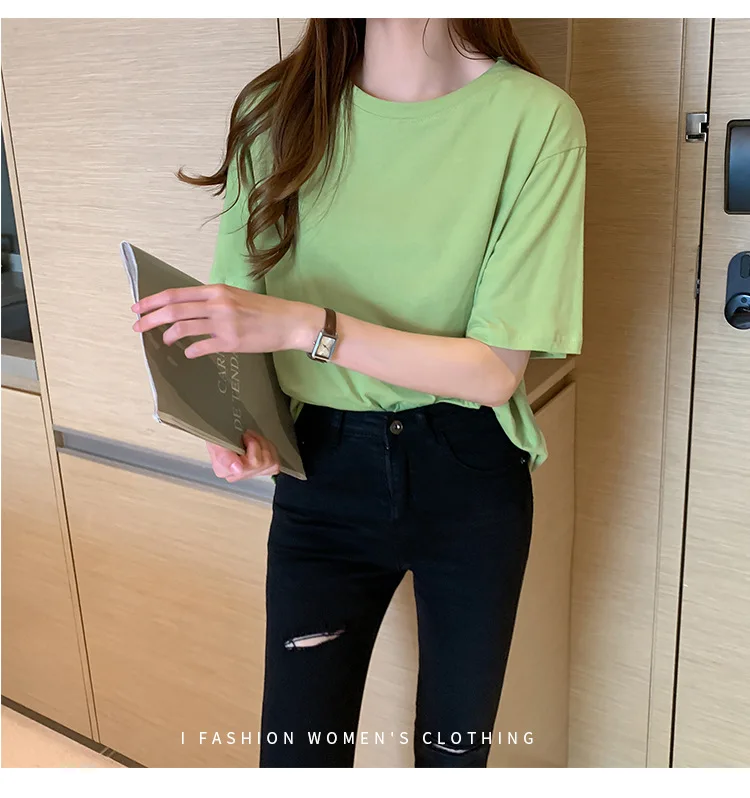 Футболка женская Базовая из чистого хлопка, базовая Однотонная рубашка, уличная одежда, красная летняя одежда, Прямая поставка