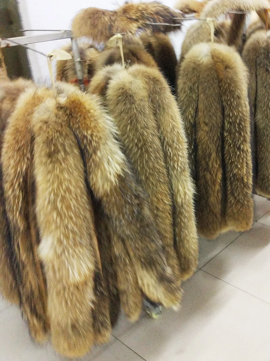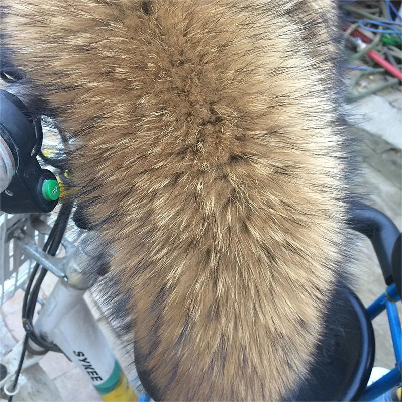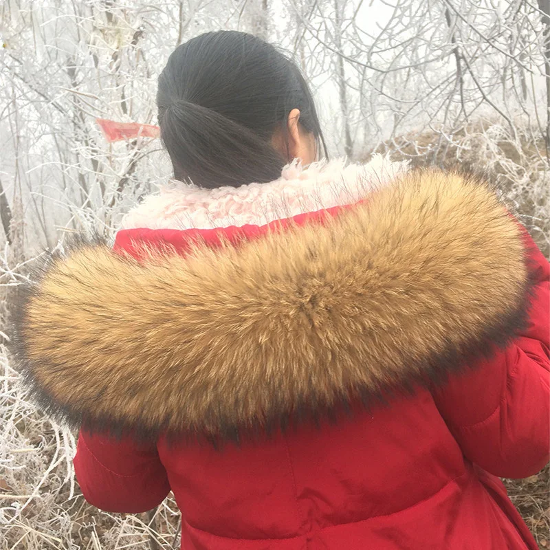 Женский зимний меховой шарф, длинный теплый шарф из натурального меха енота на воротнике, 100%