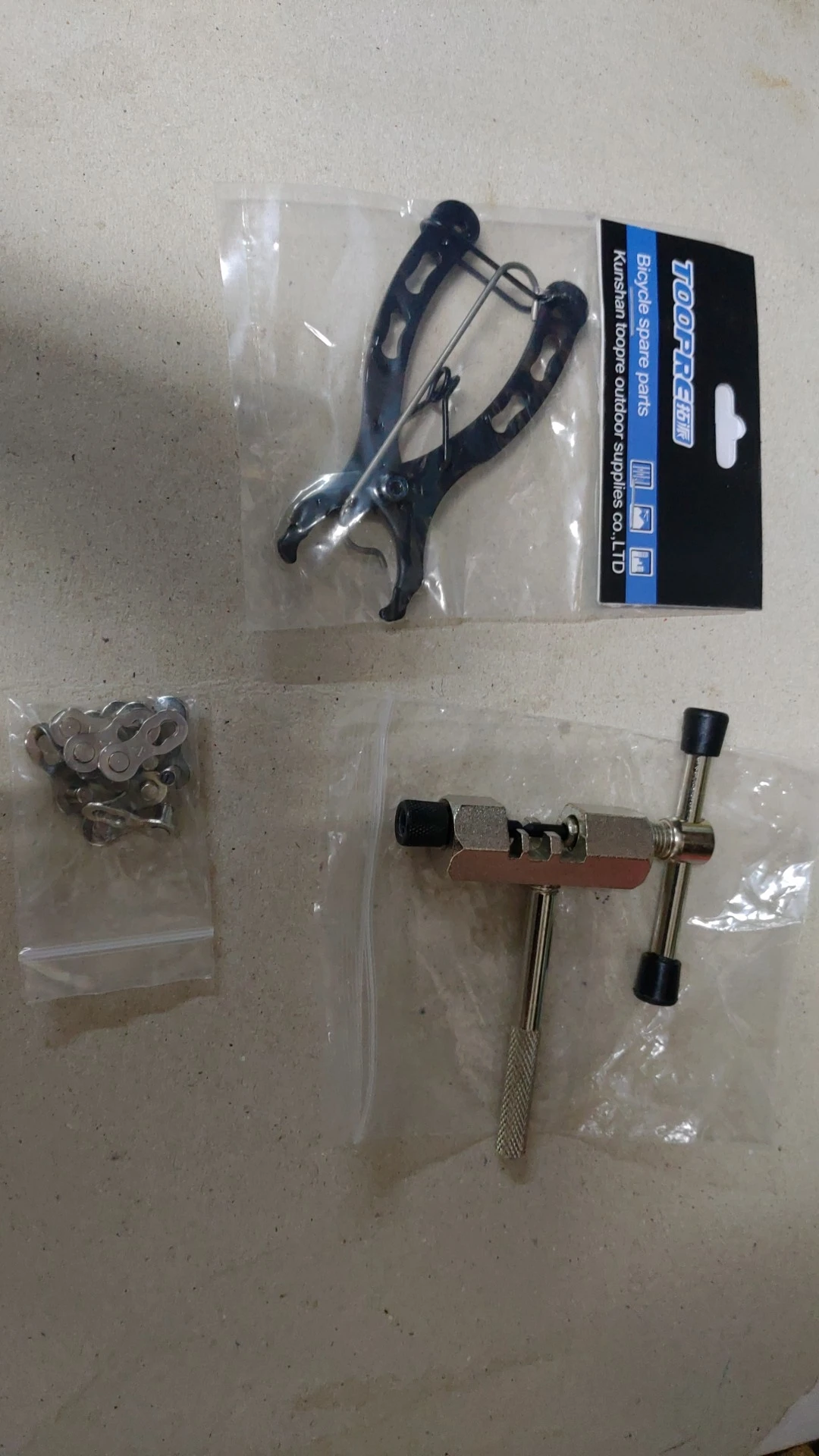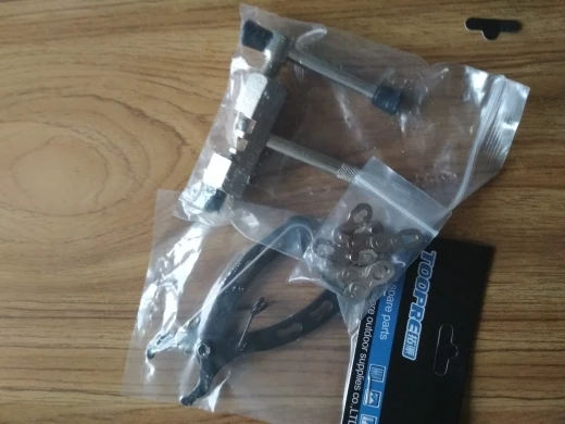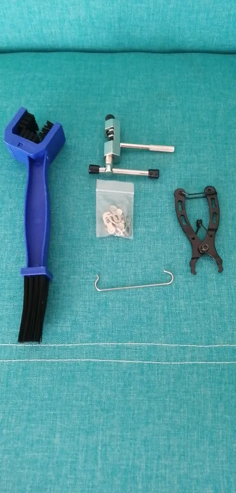 Неплохой наборчик из 5 замков, выжимки и вспомогательного инструмента. За качество ничего не скажу- не сталкивался ранее с необходимостью работы с цепью. Единственное, что выглядит солидно и крепко- это выжимка))