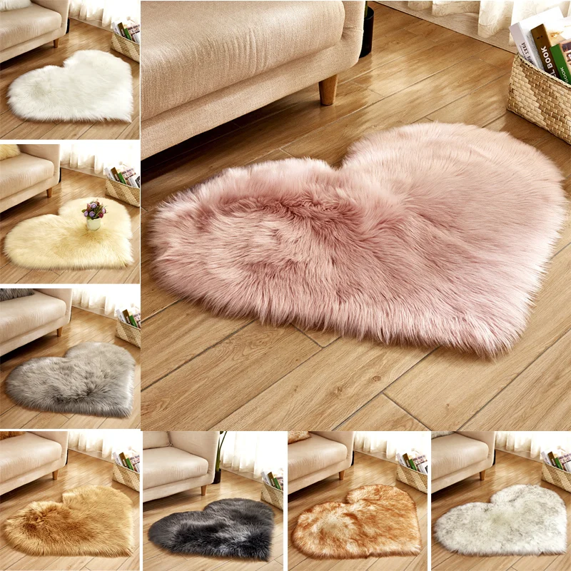 Ковер из искусственного меха в форме сердца, пушистый напольный Искусственная овчина, декоративные коврики, длинный плюшевый ворсистый любовный ковер для гостиной