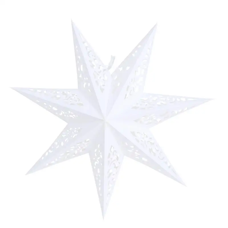 Этот товар представляет собой подвесную лампу для вечерние украшения. Этот фантастический декоративный светильник в форме звезды изготовлен не только для внутреннего освещения, но и для украшения на фестивале, в канун нового года, свадьбе и других вечеринках. Это обязательно будет точкой фокуса в любой сцене! Особенности -Цвет: белый. -Материал: специальная бумага -Размер: около 45x45x6 см. -Легко установить, можно повесить на любую рождественскую елку, стены и виндоу. -Добавьте праздничную атмосферу для любого места, например дома, магазина, витрины и т. д. -Сделайте Отличное дополнение к вашей особенной ночи. Отличное сценическое устройство подсветки для выполнения. -Украшение фестивалей, вечеринок, свадеб, дома, ресторанов, гостиной, баров и особых случаев.1 xДекоративная крышка лампы (не включая лампу)