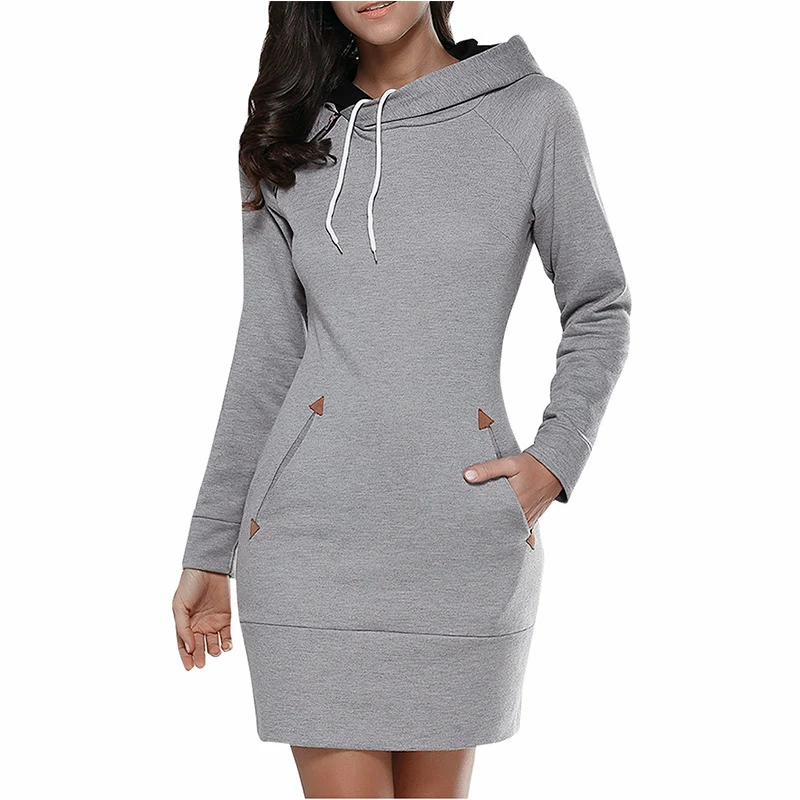 Новые женские модные повседневные платья с капюшоном, Женский пулов...
