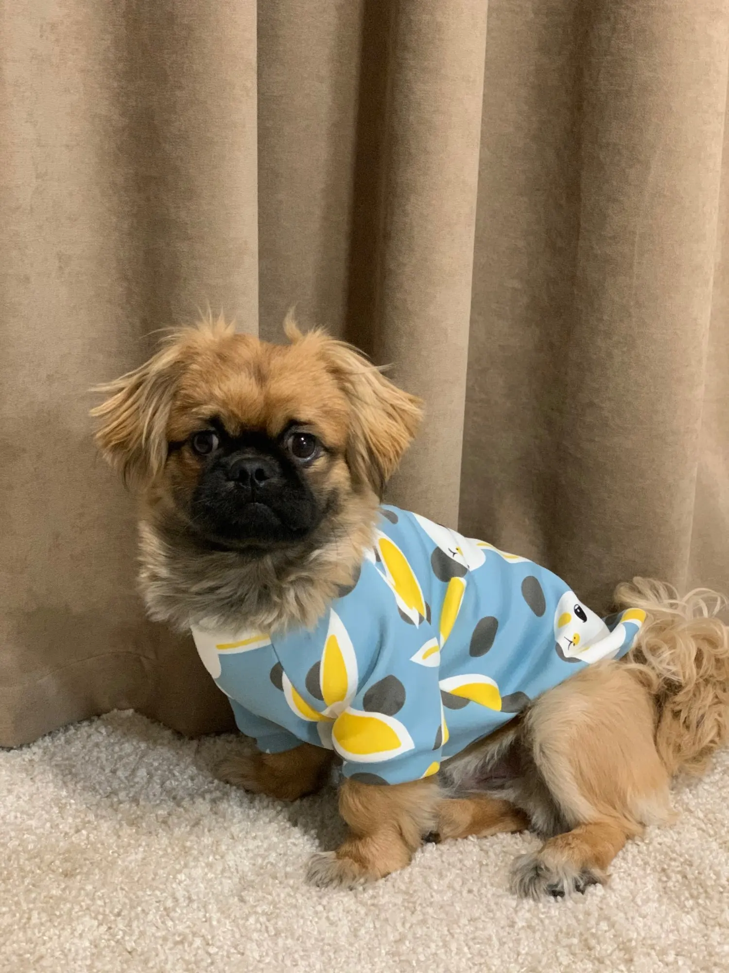Материал не самый высокий, хотя и горячий и в целом красивый. Я сделал M и несколько обильный для чихуахуа 2,8 кг, хотя в комплексе все хорошо.