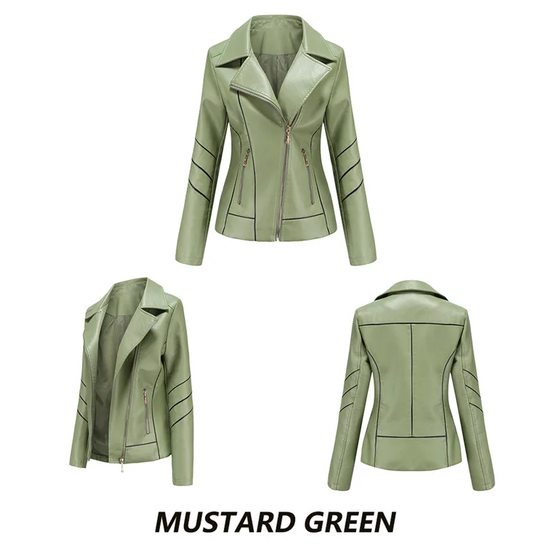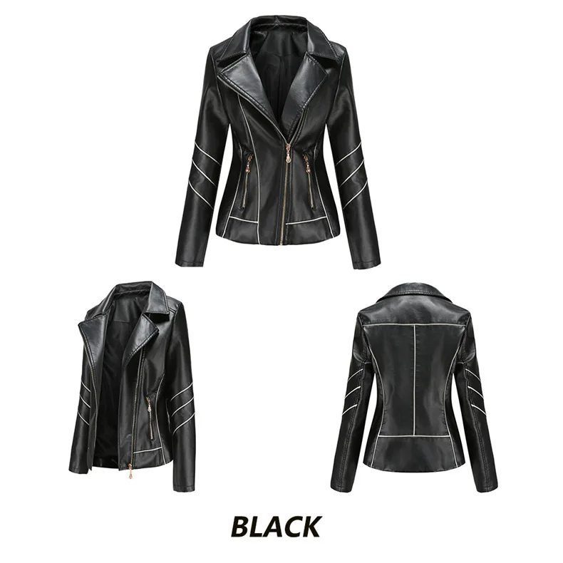 Модная женская однотонная мотоциклетная куртка из искусственной кож...