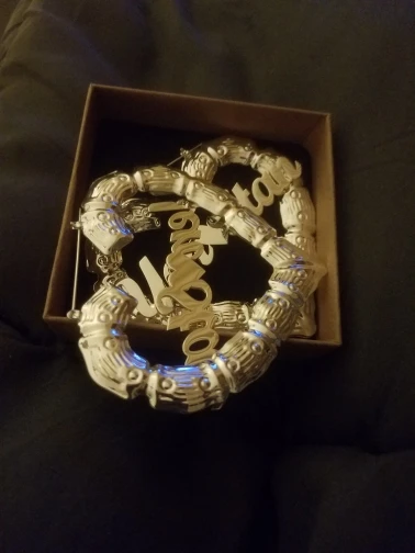 Эти серьги красивые! Продавец сделал отличную работу! Я купил золото 90 мм с серебряной надписью! Абсолютно великолепно!