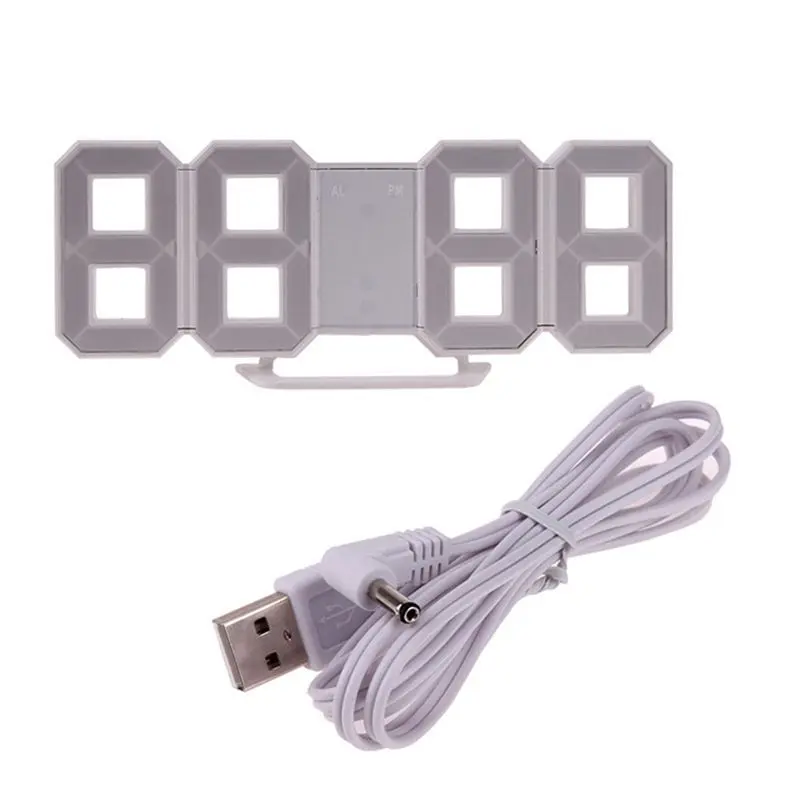 3D светодиодный настенные часы, современный цифровой будильник, дисплей для дома, кухни, для офисного стола, ночные настенные часы, 24 или 12 часов, дисплей (белый