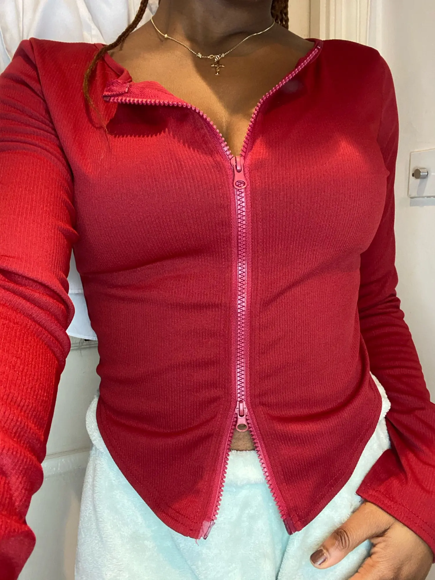 Топ женский трикотажный в рубчик, с длинным рукавом, на молнии, весна-осень