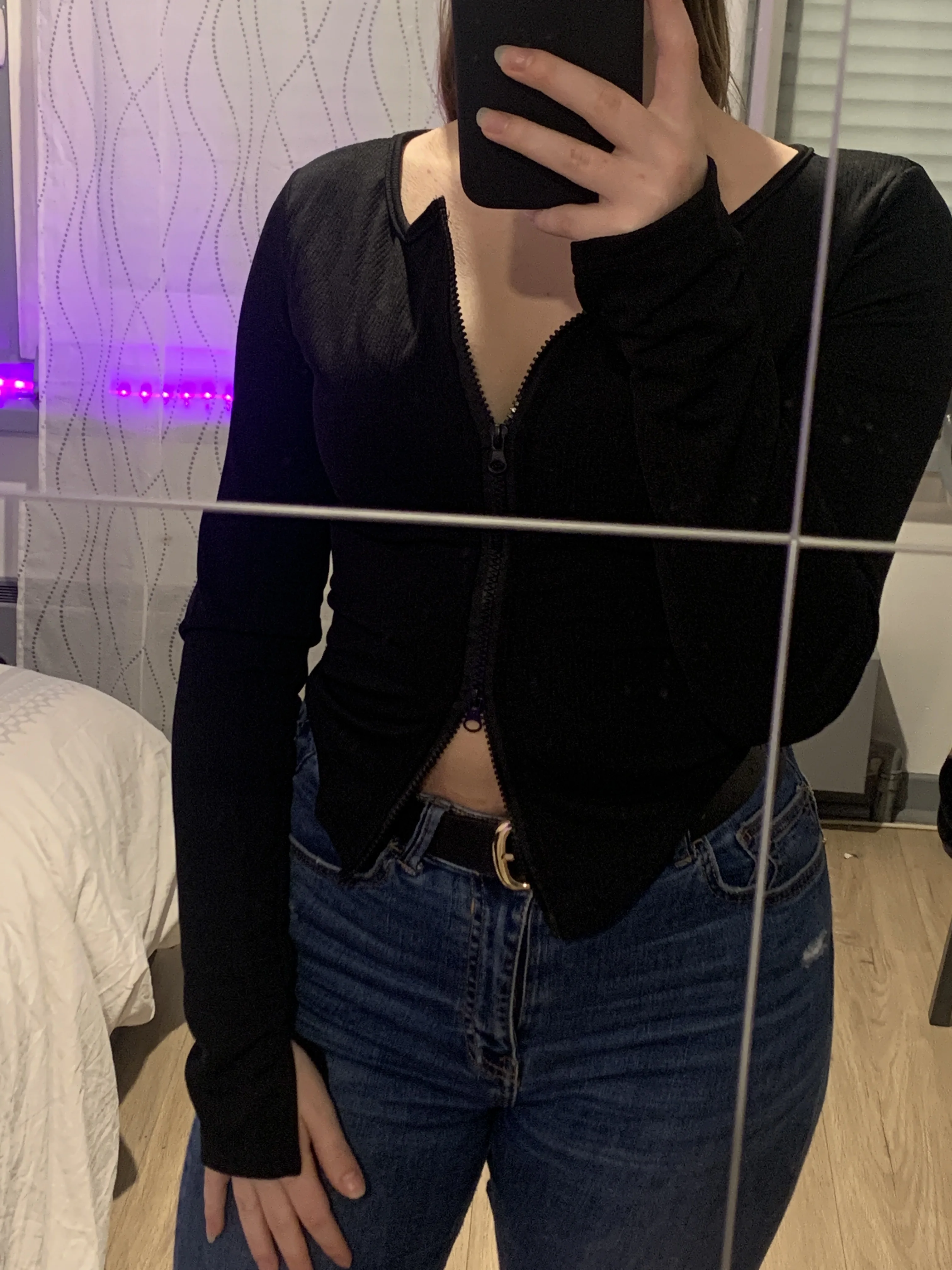 I was expecting the shirt to be cotton material but it’s a bit thinner material than i thought but not see through!! I’m rating it 5 stars because it’s one of my favorite shirts ever!! The tight fit of it and the zippers are great!! highly recommend 5/5