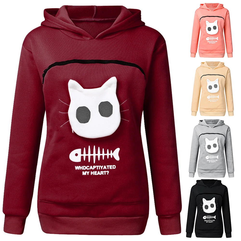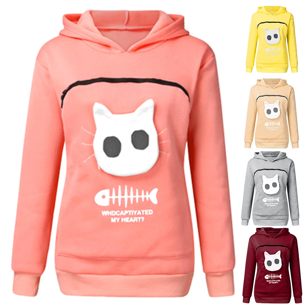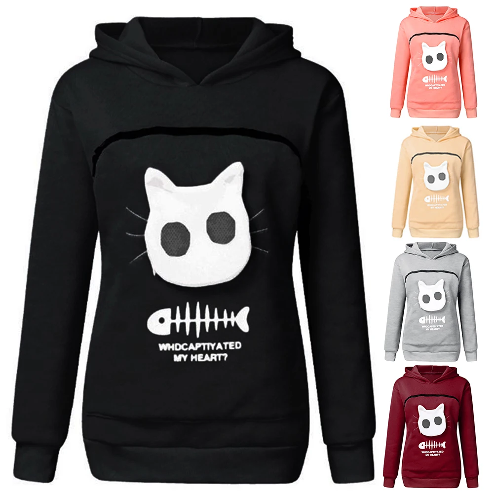 Женская толстовка с капюшоном с изображением кошек, кенгуру, собаки, лапы домашних животных, пуловеры для девочек, толстовка с капюшоном и карманами для малышей, Женская толстовка с капюшоном