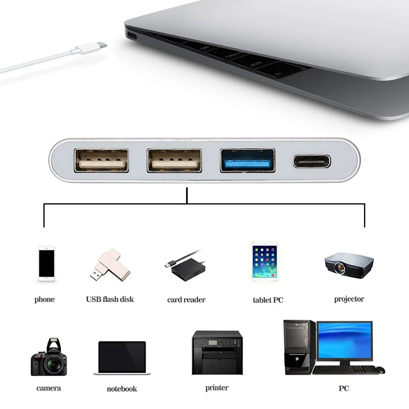 USB 3,1 Type-C до четырех портов 2,0/3,0 HUB line / notebook Air 12 дюймов USB 3,1 HUB hub HUB OTG функция, интерфейс 3,1 может быть вставлен