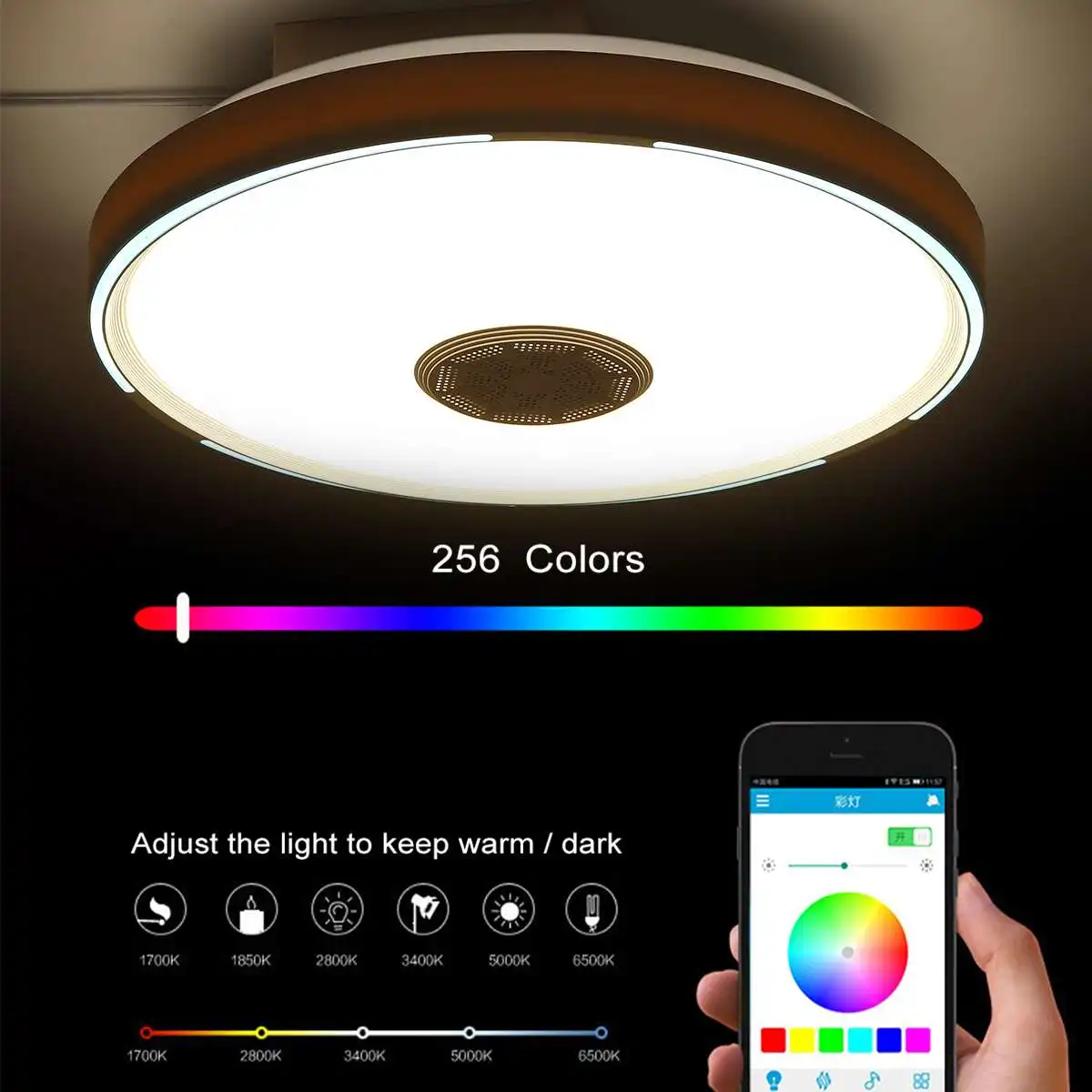 Посылка включает в себя:1x умный светодиодный потолочный светильник1x набор монтажных аксессуаров1x пульт дистанционного управленияПараметрыНапряжение: 110-245 В/50-60 ГцМощность: 100 ВтДиаметр: 40 см/15,7 дюймаРежим управления: настенный выключатель + управление мобильным приложением + пульт дистанционного управления + интеллектуальное аудио управлениеСветильник режимы: подстраиваются под тусклый или яркий, ритм музыки прозрачный градиентный фон красочный flashinging светильникВерсия Wi-Fi: Поддержка amazon, google, Tmall Genie, Xiaodu и другого интеллектуального Аудио управления, мобильный пульт дистанционного управленияОсобенности:* Изготовлено из Высококачественная светодиодная микросхема, толстый акрил, который обеспечивает долгий срок службы, долговечный для использования.* Умное управление: светильник может управляться различными способами, такими как настенный выключатель, мобильное приложение и пульт дистанционного управления, что обеспечивает более удобство управления.* Мульти-Режим работы: он имеет много режимов, белый светильник, теплый светильник, нейтральный светильник, прочный светильник, режимы сцены, такие как музыкальный ритм, градиент, красочный светильник с подсветкой, чтобы удовлетворить ваши различные потребности гибко, очень практично для вашей повседневной жизни.* Мобильное приложение и bluetooth могут регулировать яркость, менять цвет, пульт дистанционного управления может включать и выключать светильник, регулировать яркость и цвет, воспроизводить песни, регулировать громкость, это такой умный потолочный светильник, который изменит вашу концепцию на потолочный светильник, Это как верный компаньон, который позаботится о вашем настроении.* Энергосбережение: с ярким источником высокой мощности Светодиодный светильник, экономия большой мощности по сравнению с тем же уровнем яркости нормальный светильник, который не применяется светодиодный чип, экологически чистый.* Умное управление: это приложение доступно для устройств Apple Iphone, Ipad и Android.