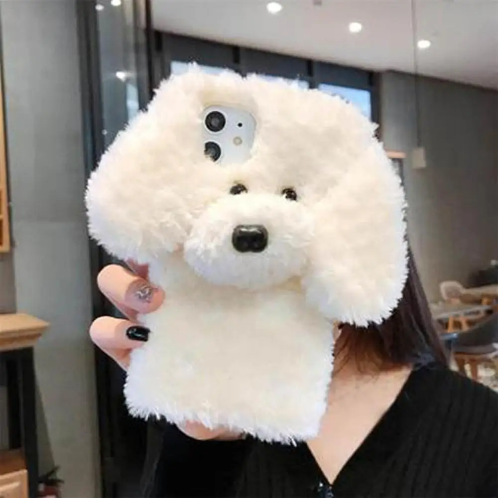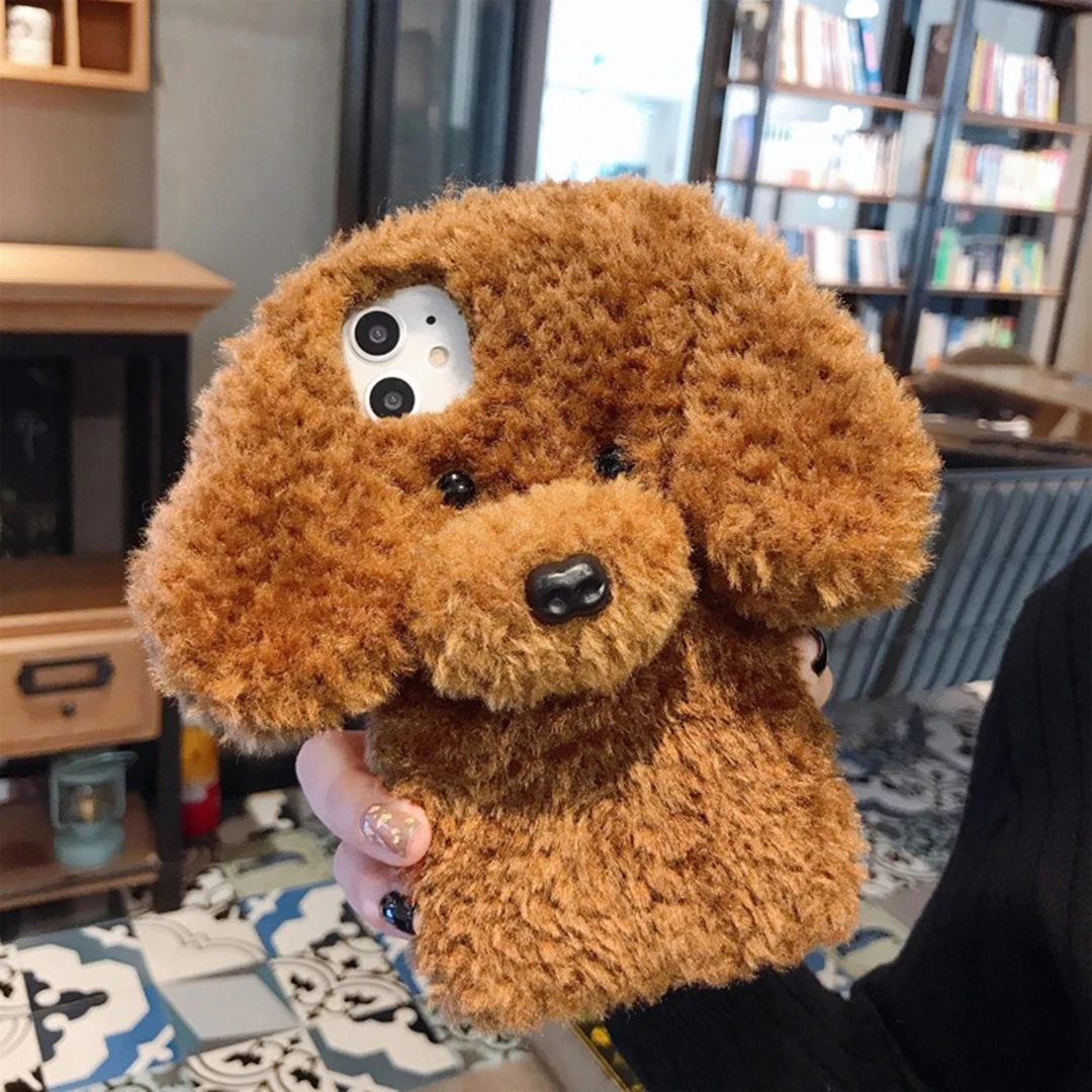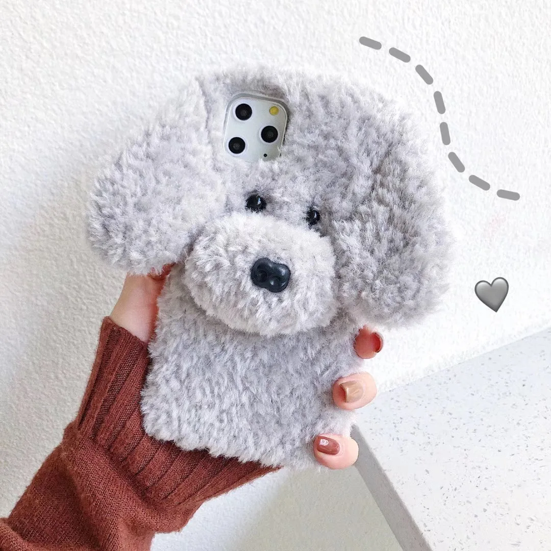 Меховой милый коричневый длинный зимний плюшевый силиконовый мягкий чехол с собачкой для iphone 11pro MAX XS XR SE2 7 8plus чехол для телефона