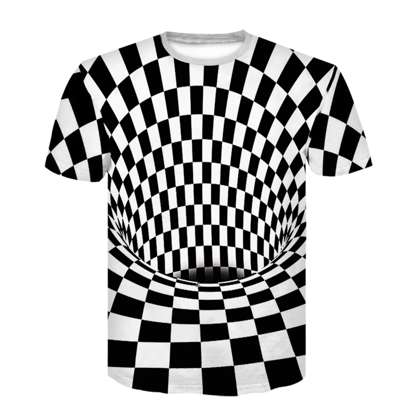 2022 брендовая мужская футболка с принтом, забавная футболка, черно-белая графическая футболка с круглым вырезом и оптической иллюзией, женская футболка 3D