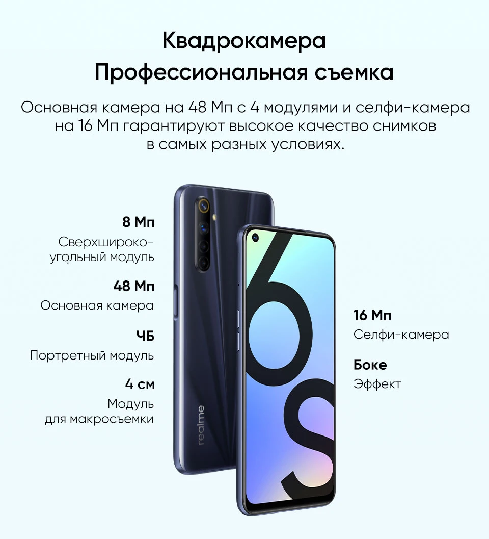 Смартфон realme 6s 6+128 ГБ NFC,Процессор Helio G90T,Быстрая зарядка 30 ВтРостест,Официальная гарантия