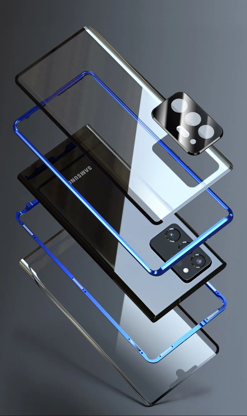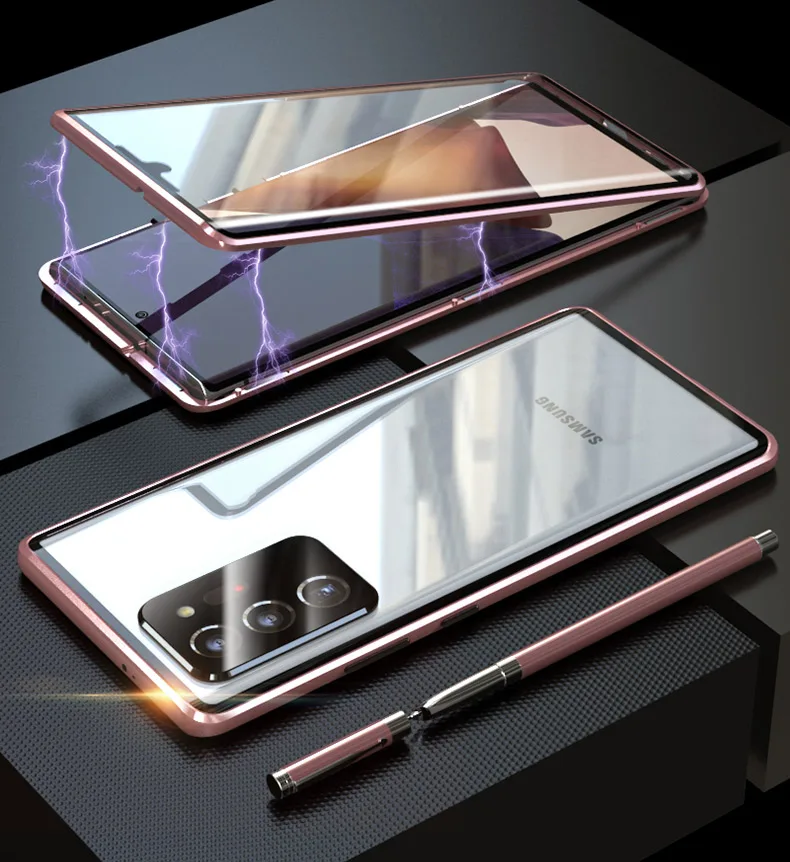 Магнитный чехол с защитой для экрана и камеры для Samsung Galaxy Note 20 Ultra S21 Plus S20 fe, металлический чехол