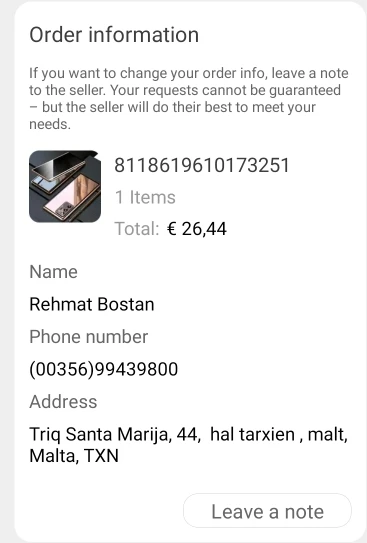 Страна: GR Color: blue 360 Material: For Note 20 Ultra Доставка: China Post Registered Air Mail 11.01.2021