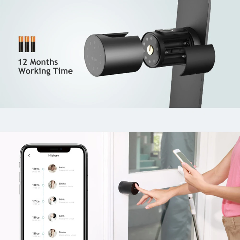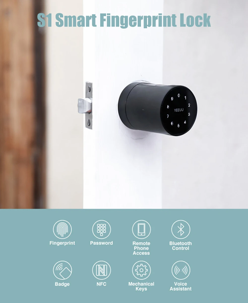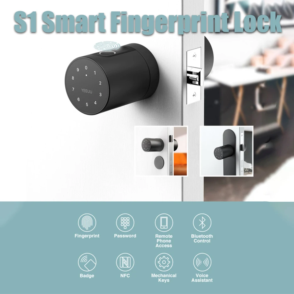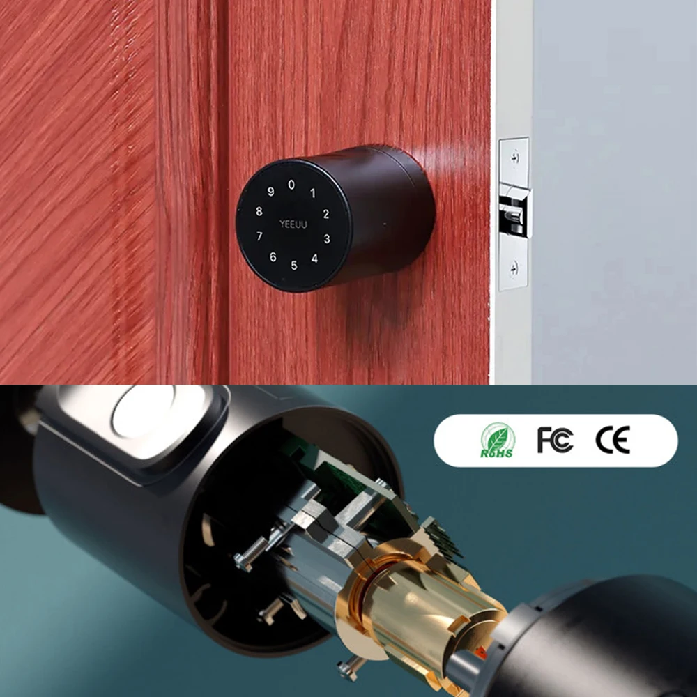 Дверной смарт-замок YEEUU S1, цилиндрический замок с поддержкой Bluetooth, со сканером отпечатков пальцев и паролем, работает с Alexa Google Home