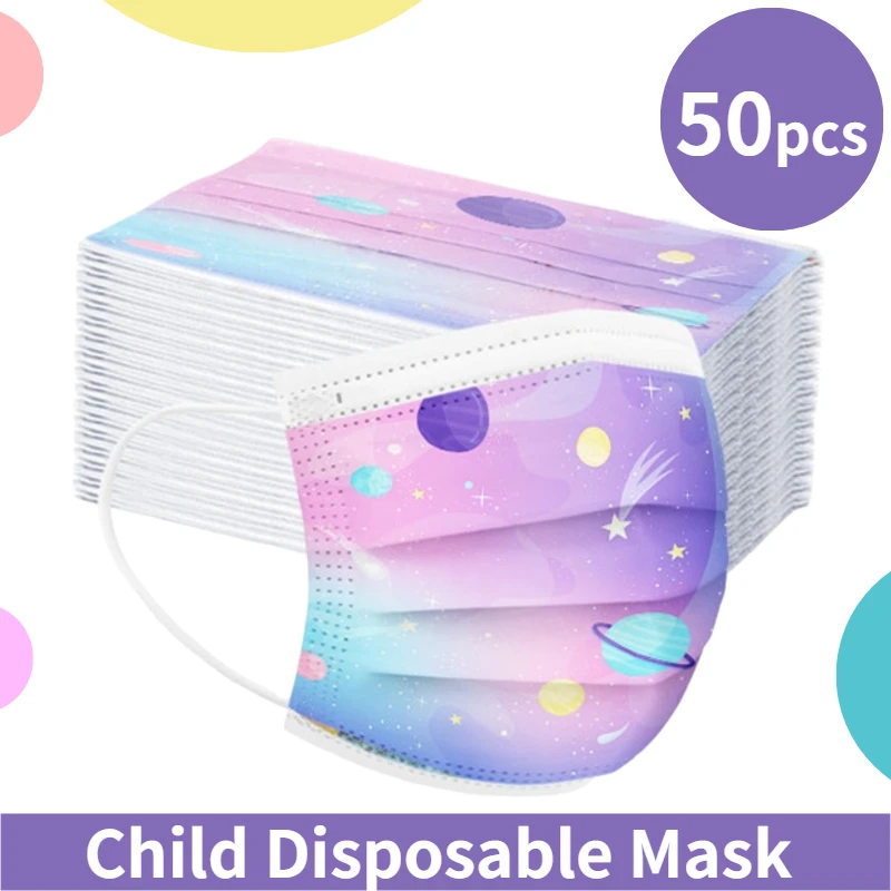 Маска детская одноразовая, трехслойная, с рисунком планеты