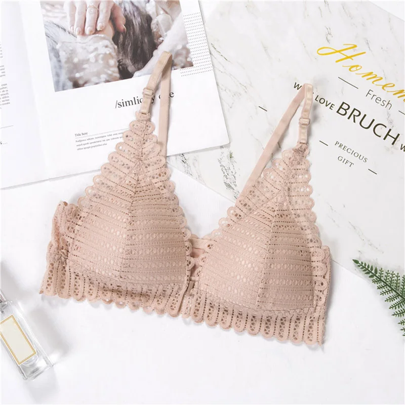 Женский бюстгальтер с застежкой спереди, кружевное нижнее белье, пуш-ап, регулируемый, дышащий, для лета