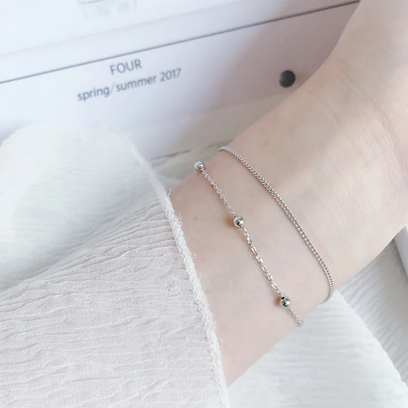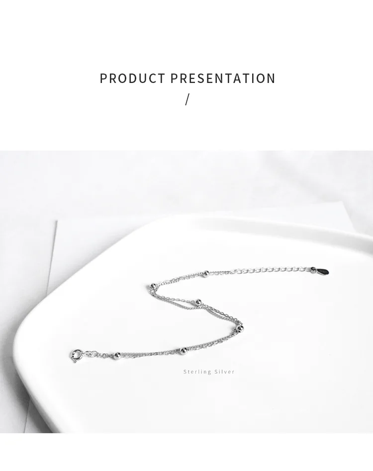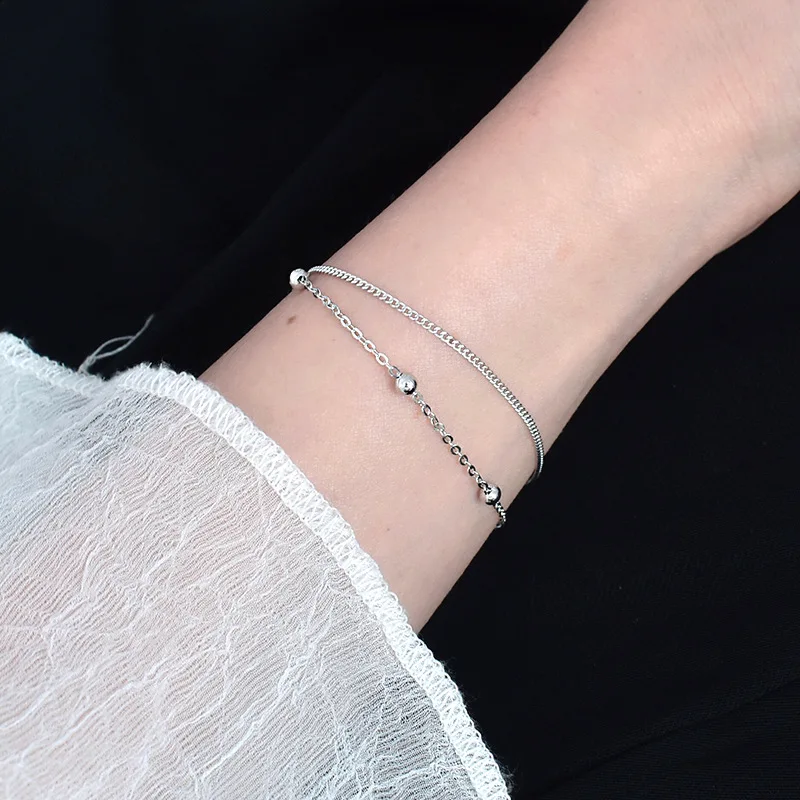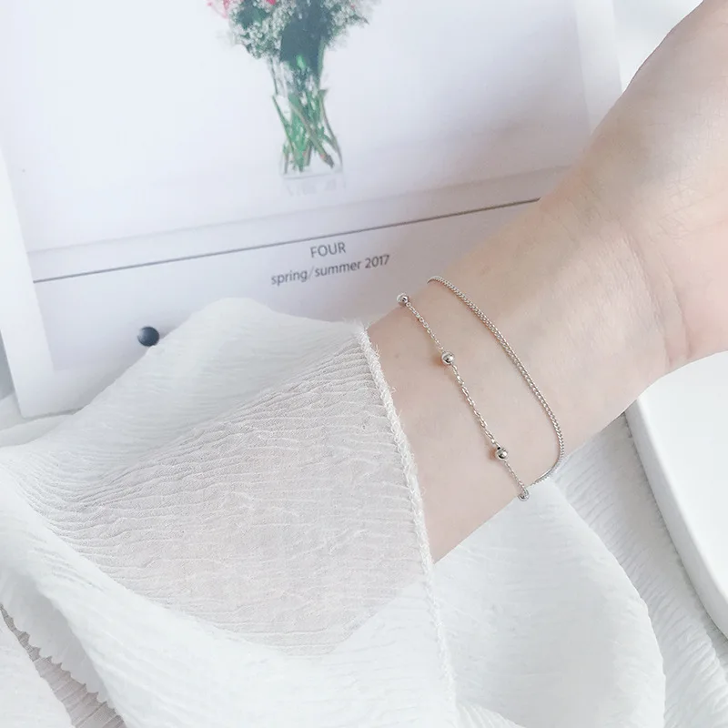 Браслет женский из серебра 925 пробы с двойными бусинами
