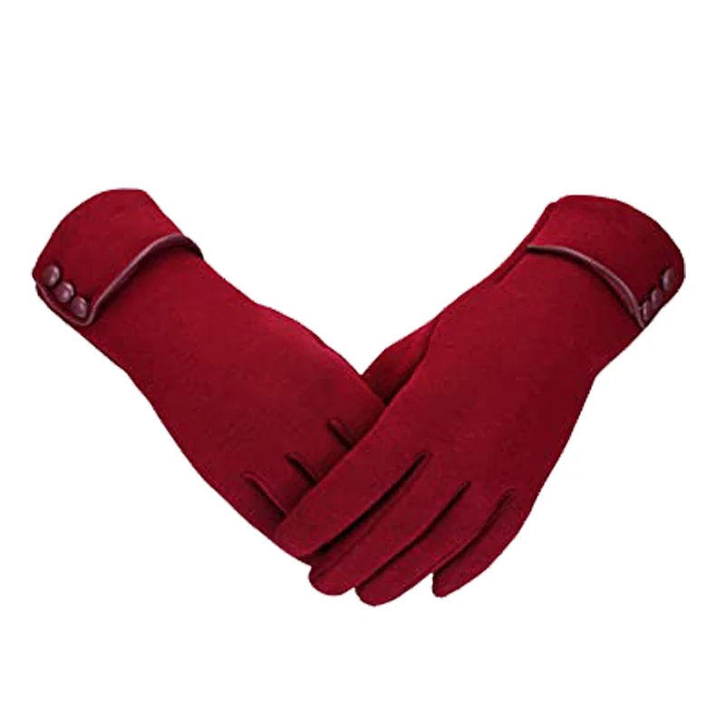 Модные зимние женские теплые перчатки на пуговицах для езды на вело...