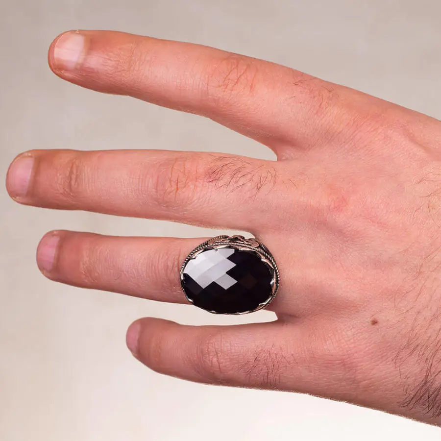 Мужское прямоугольное кольцо из серебра 925 пробы с гранями