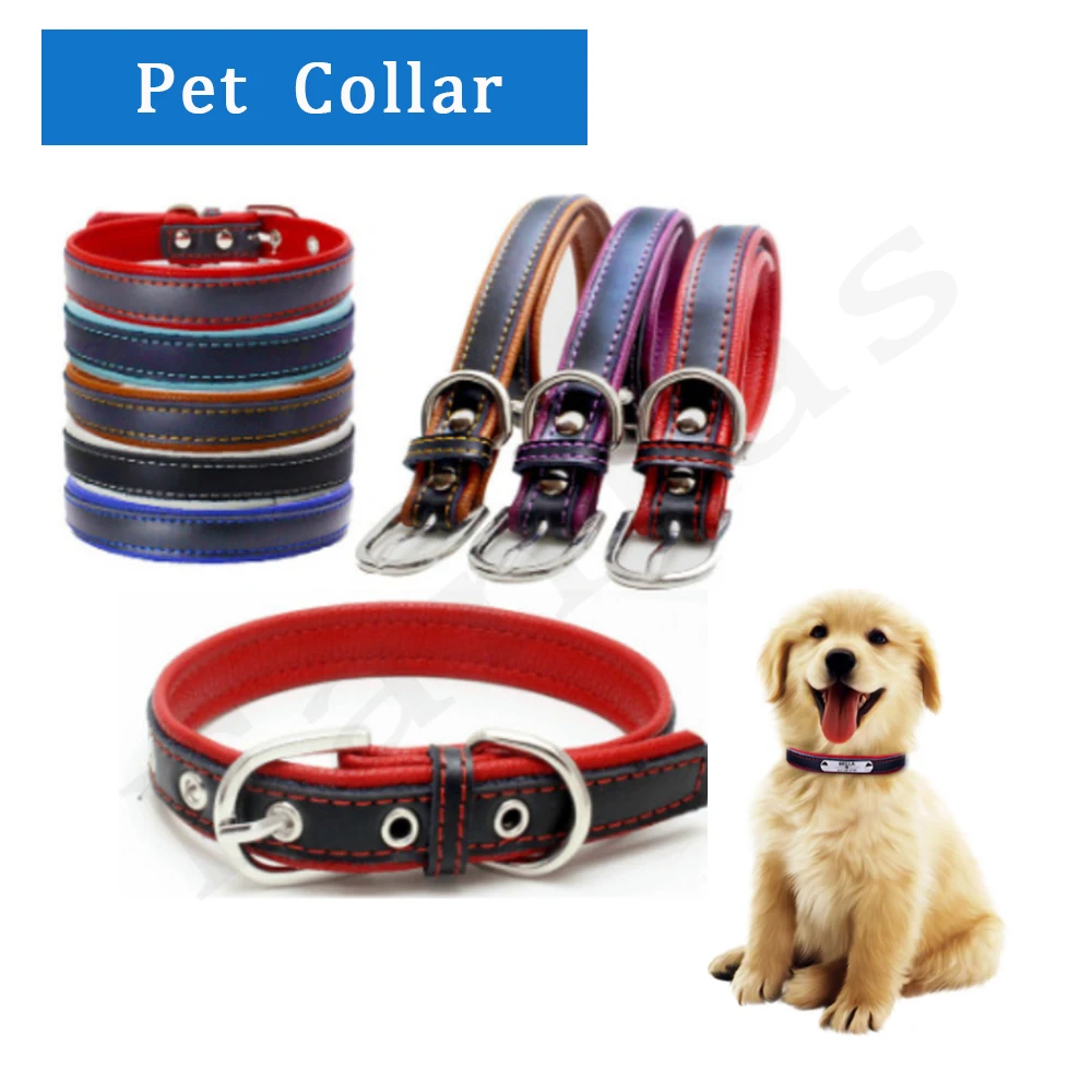 Регулируемый персонализированный собачий ошейник, двойной кожаный ошейник, утолщенный с полосой личи, удобный собачий ошейник с подложкой, товары для собак