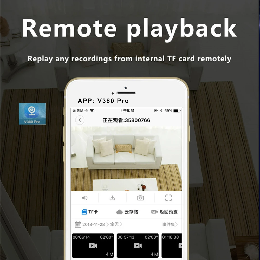 5. Поддерживает дистанционное воспроизведение, записи на карте MicroSD можно просматривать удаленно в любое время.