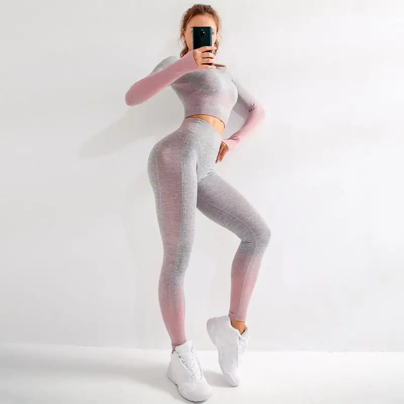 Комплект Для Йоги Женский бесшовный, Топ с длинным рукавом и высоко...