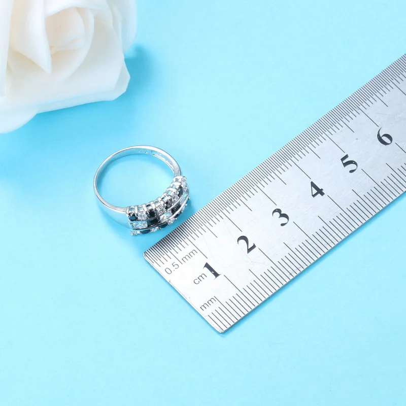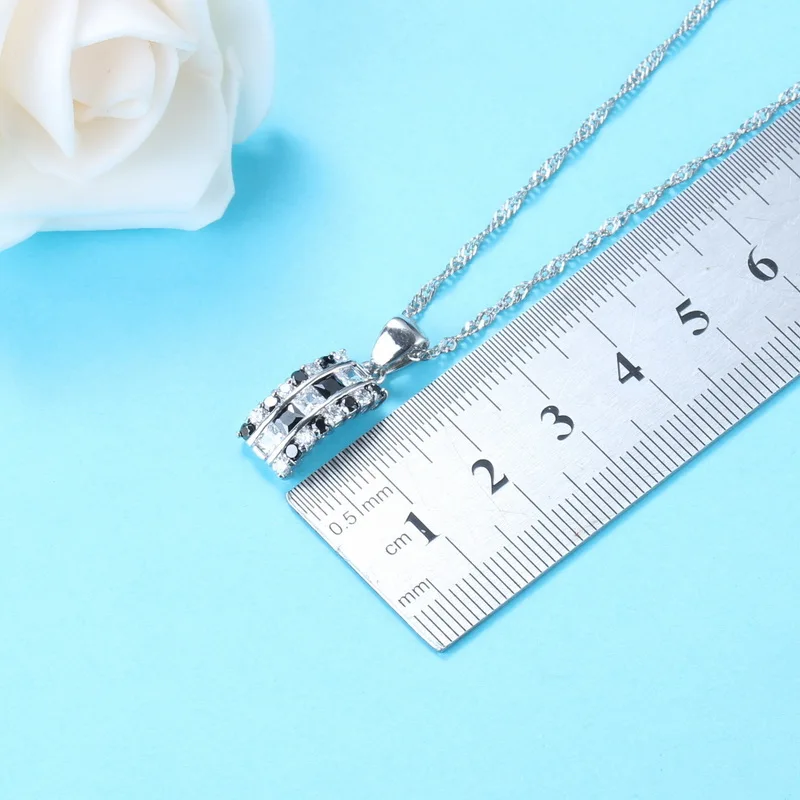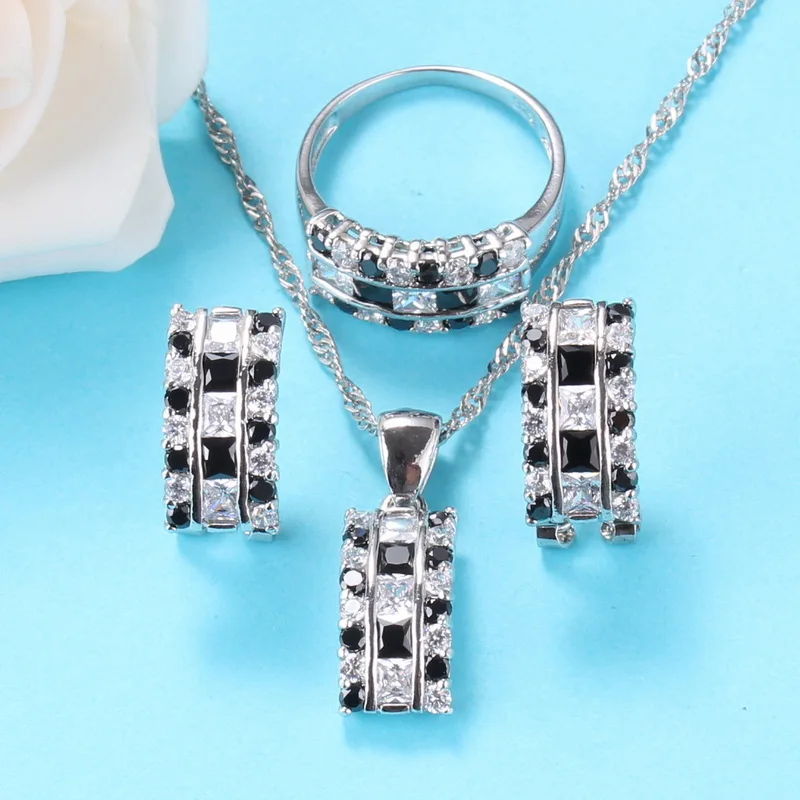 Siver 925 новый модный костюм Белый Черный Камень Ювелирные наборы для женщин клипсы серьги ожерелье кулон кольцо наборы из 3 предметов