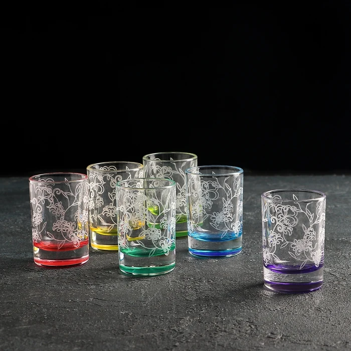 Набор стопок 50 мл "Лель. Рrimavera", 6 шт, гравировка, цветное дно