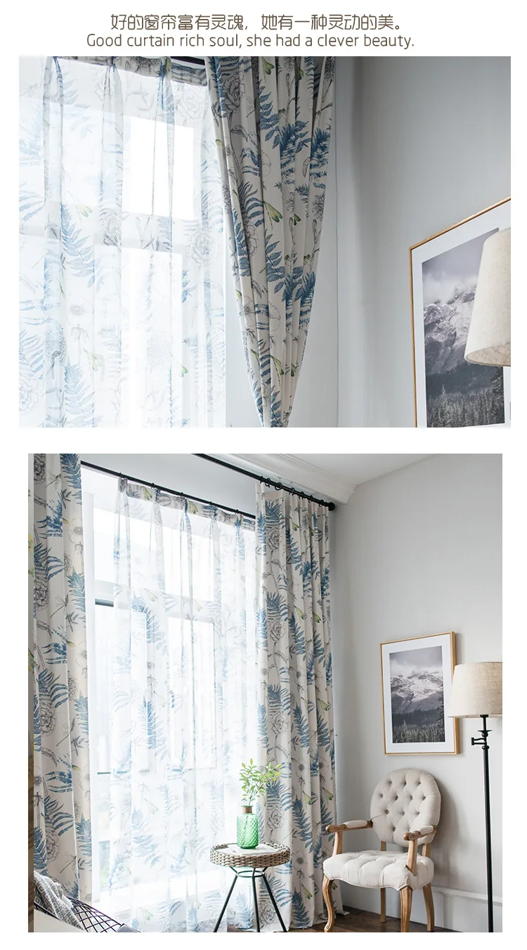Американские тропические занавески s для гостиной, зеленые, синие листья, тюлевые занавески для спальни, прозрачные Занавески для окон