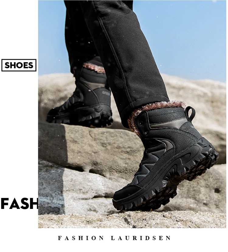 Мужские зимние ботинки на меху, коричневые непромокаемые ботинки с нескользящей резиновой подошвой