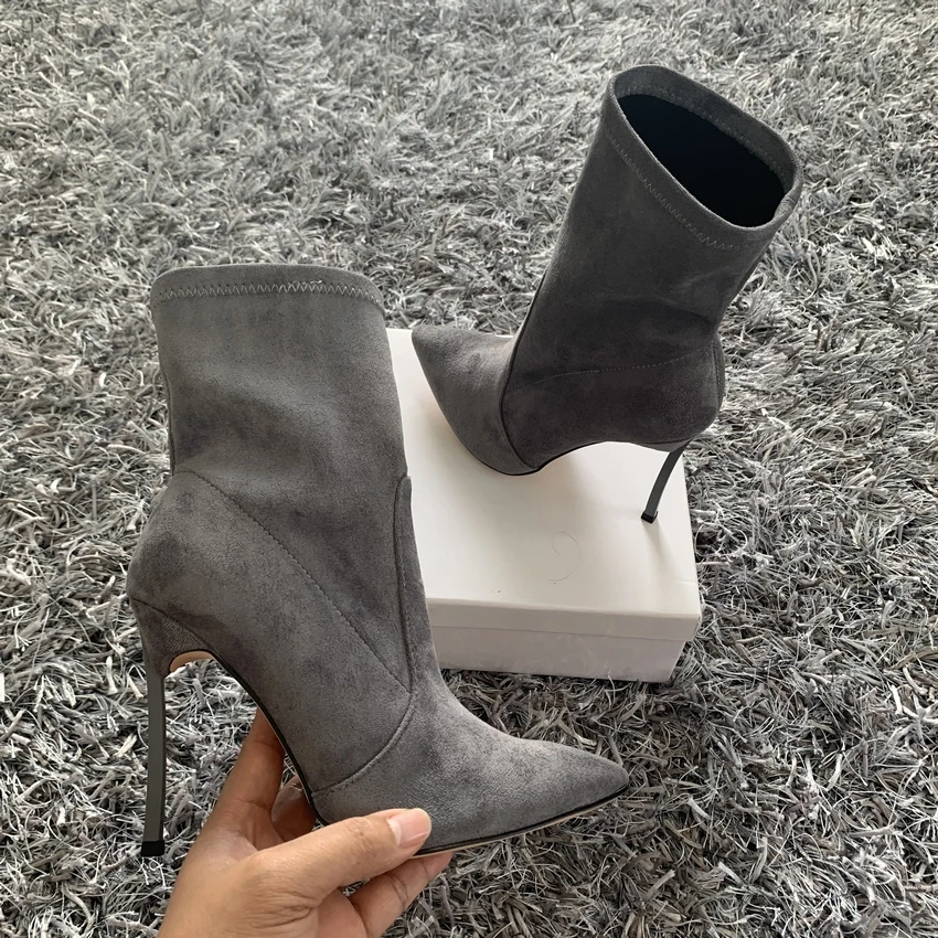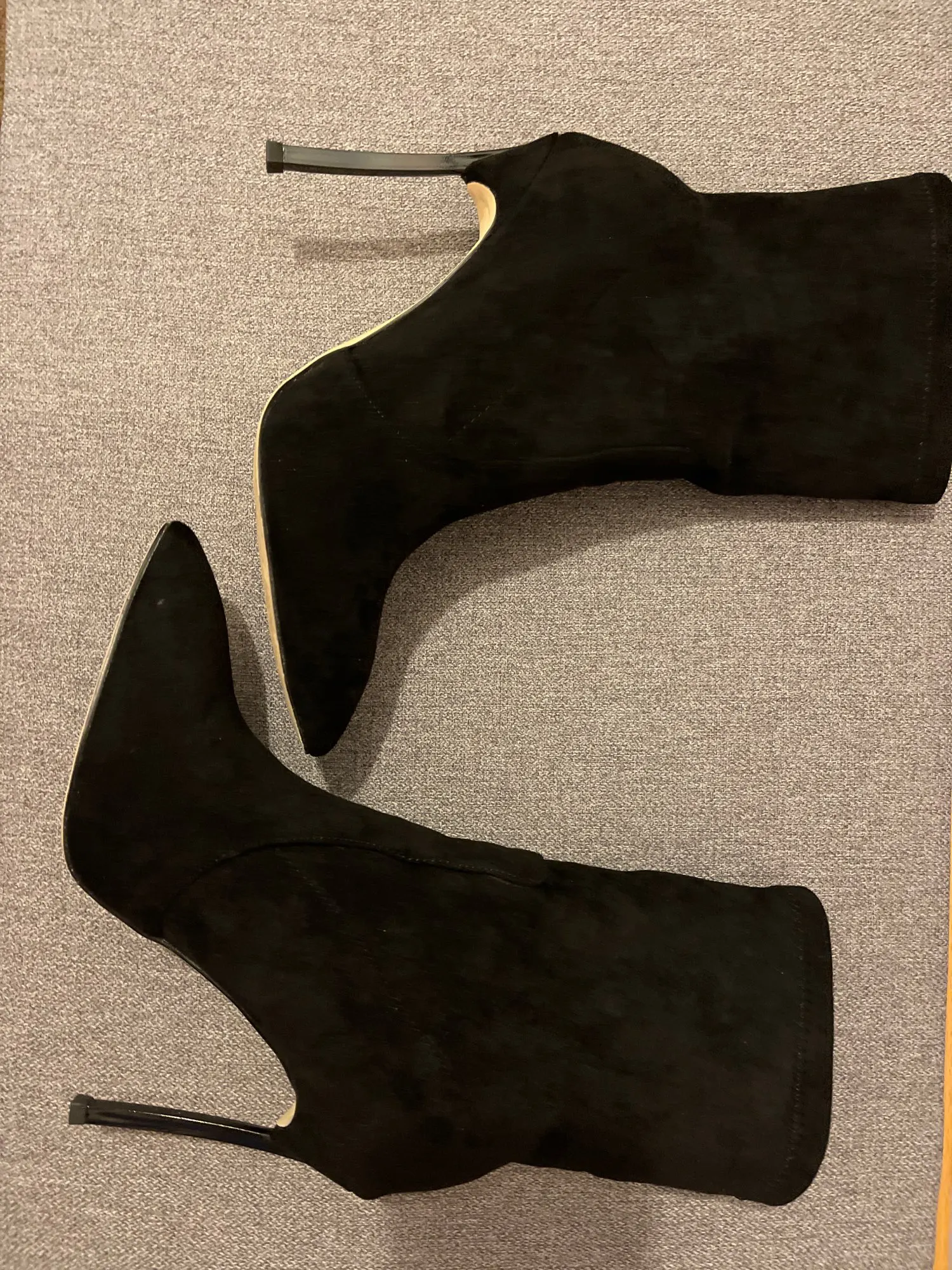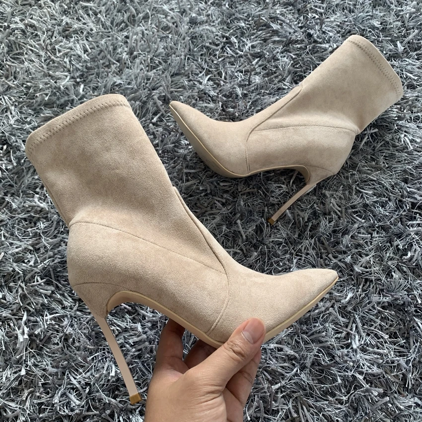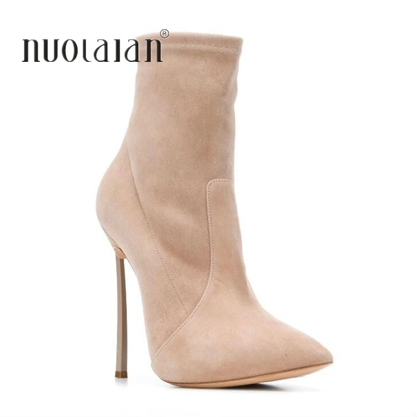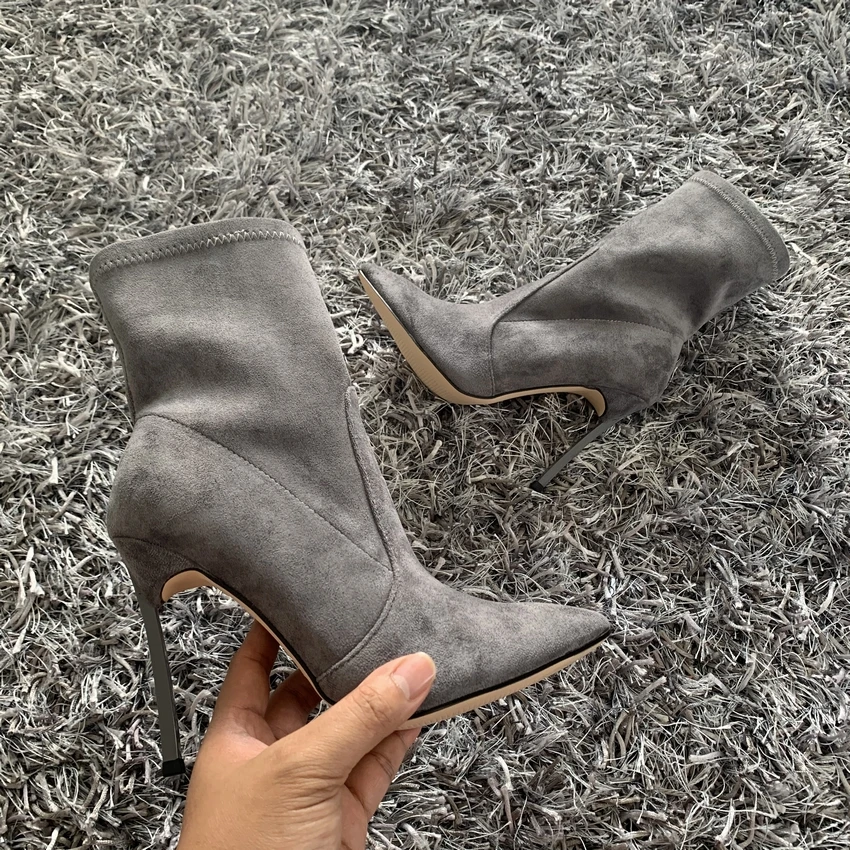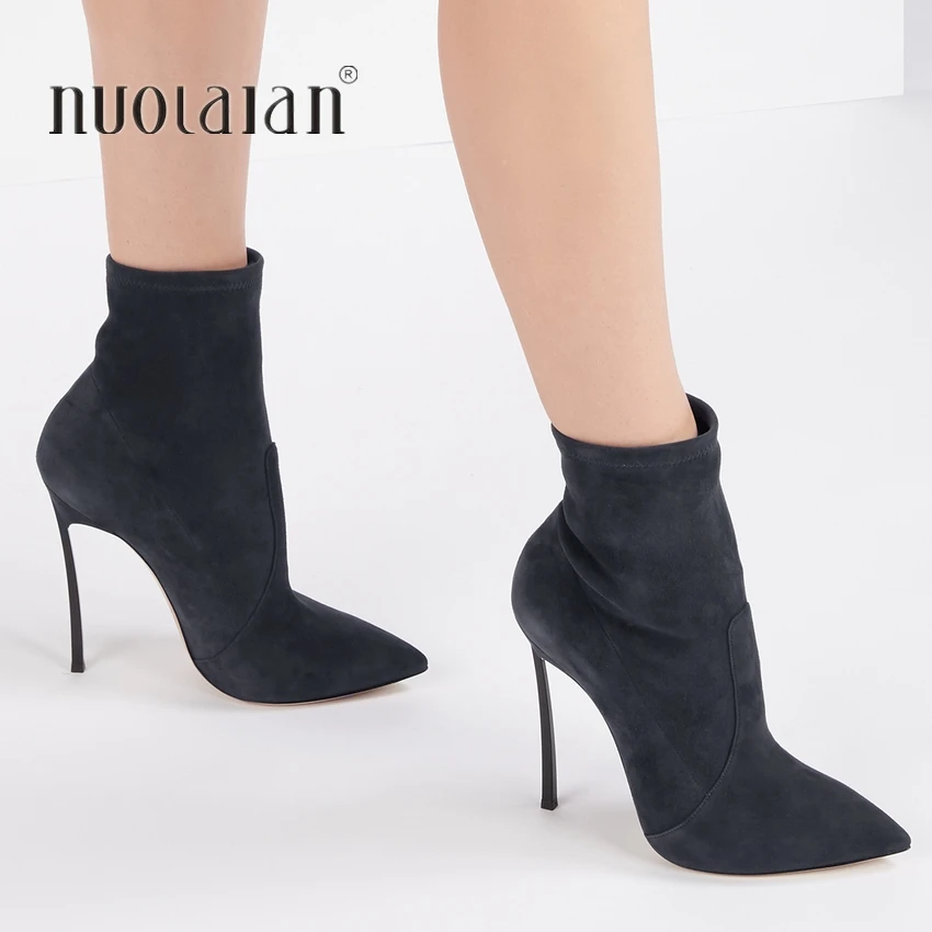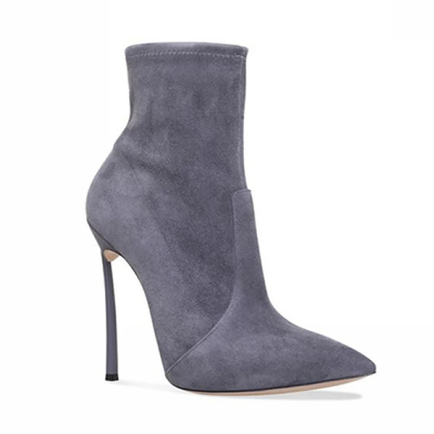 Ботинки женские зимние из искусственной замши, с острым носком, на высоком каблуке 11 см