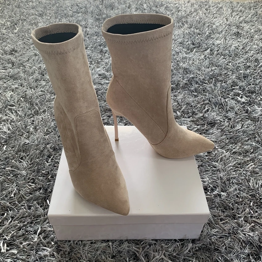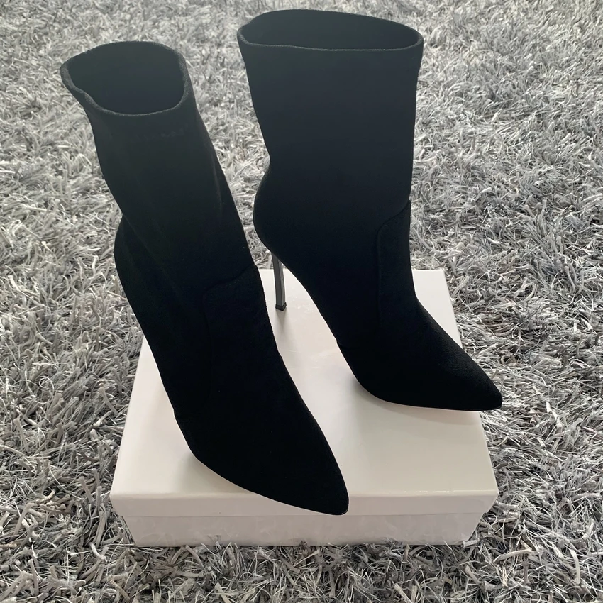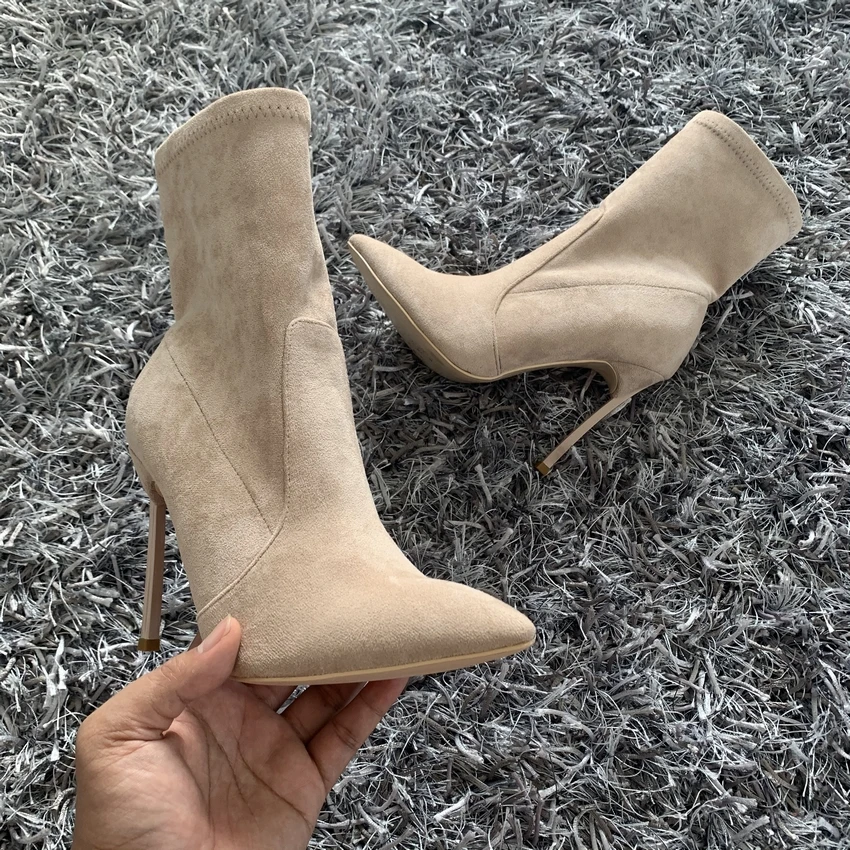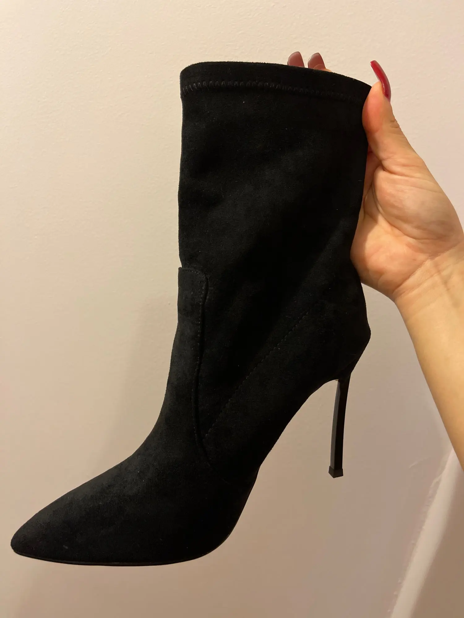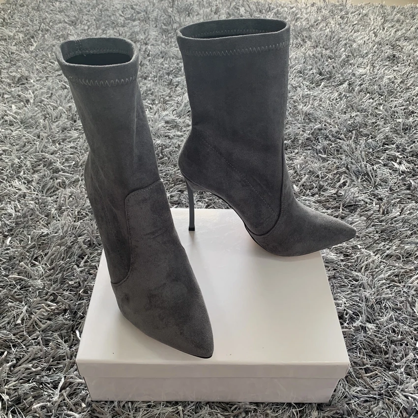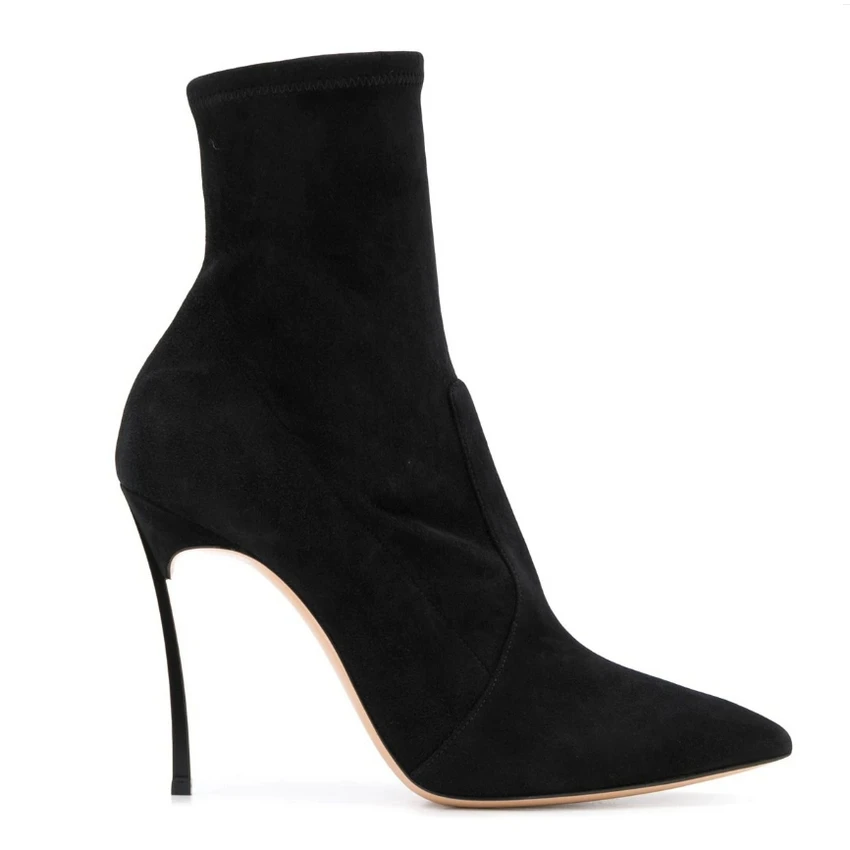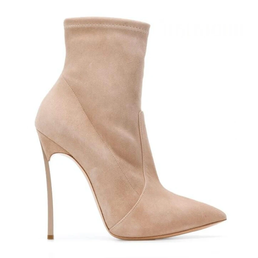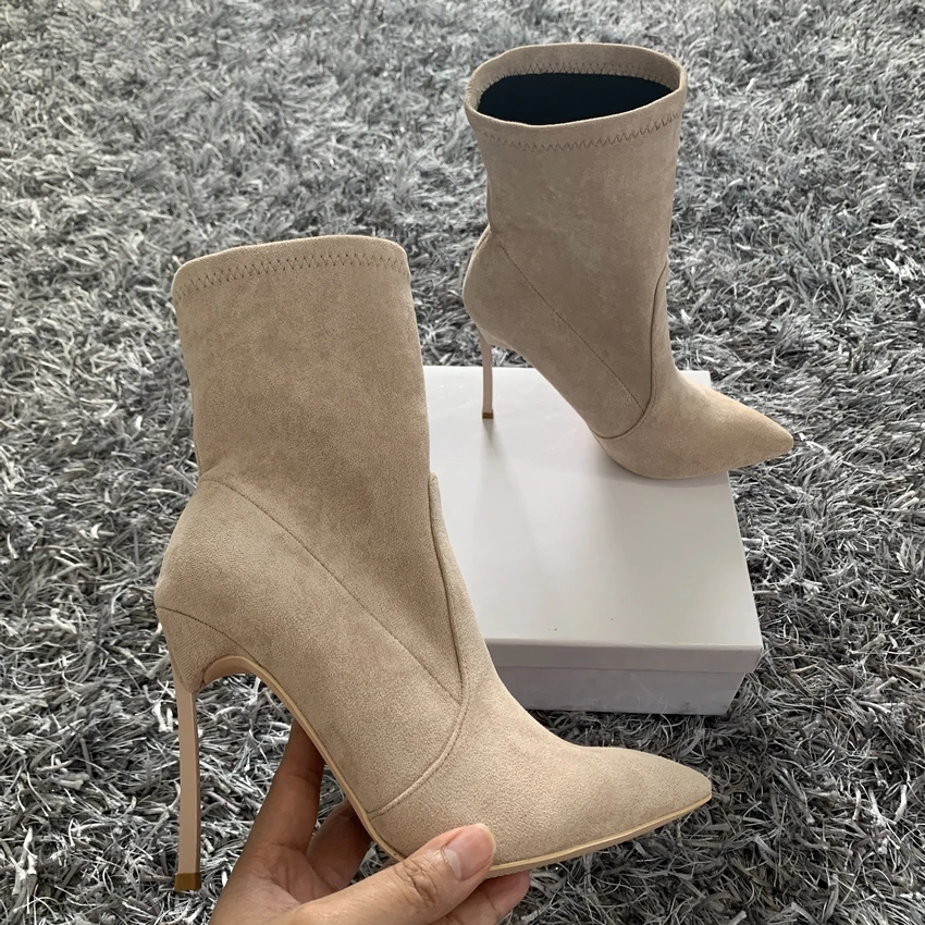 Ботинки женские зимние из искусственной замши, с острым носком, на высоком каблуке 11 см