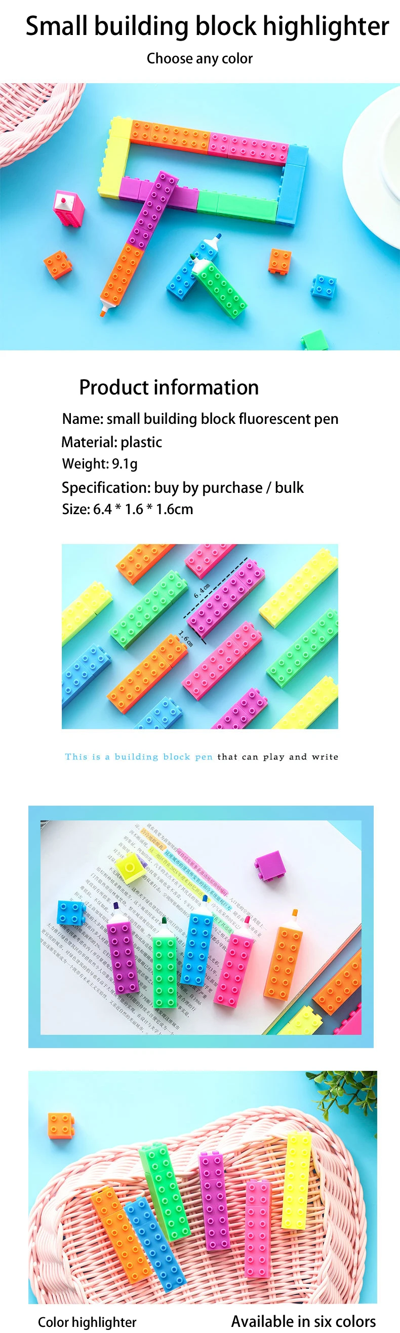 Детский строительный блок хайлайтер кубик строительный блок форма большая емкость 6 цветов можно собрать студенческие канцелярские принадлежности