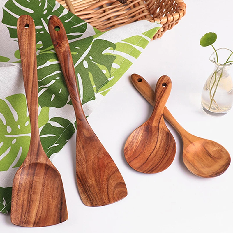 Набор кухонной утвари Тиковая деревянная Антипригарная посуда инструменты лопатка Черпак суп ложка совок для дома и кухни Наборы инструментов для приготовления пищи