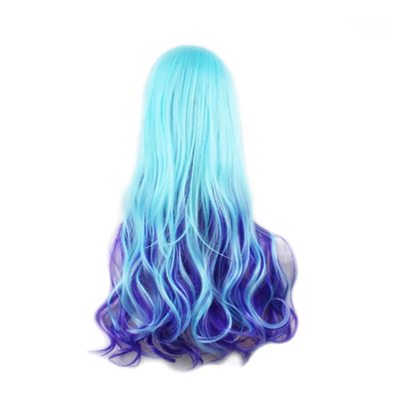 Парик из синтетических волос с челкой, длинный, Радужный, розовый, синий, красный, зеленый, коричневый, белый, серый
