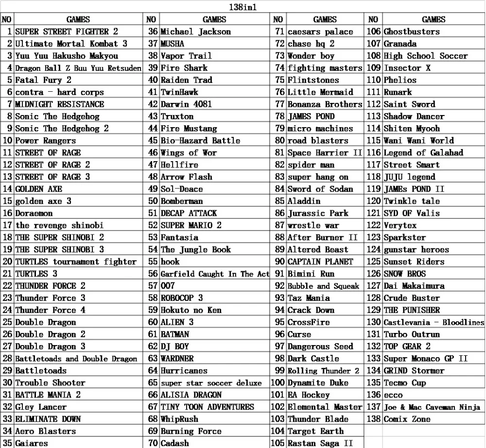 Лидер продаж, игровая коллекция 138 в 1 для SEGA GENESIS MegaDrive, 16-битный игровой Картридж для игровых консолей PAL и NTSC