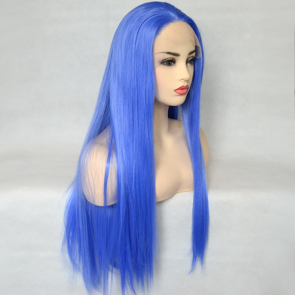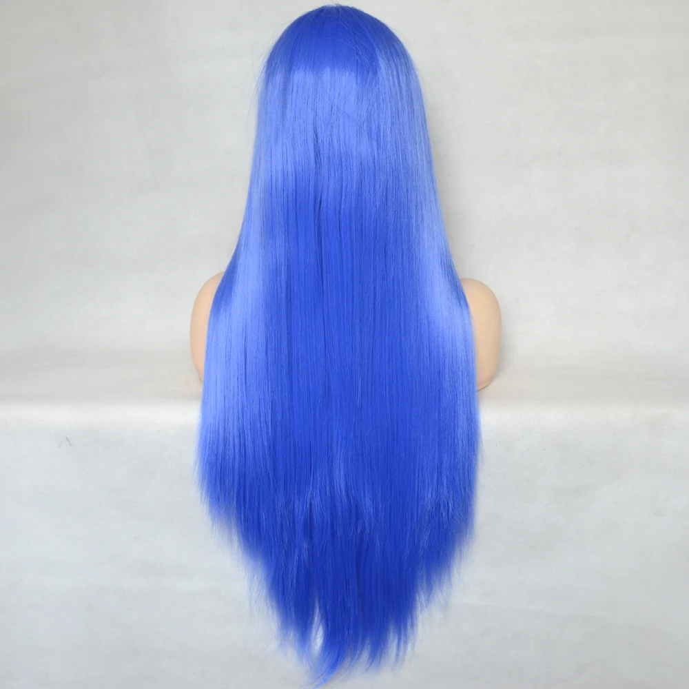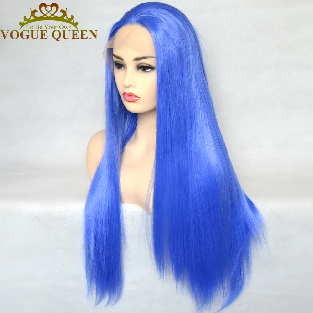Парик Vogue Queen Небесно-Голубой Синтетический на сетке спереди, Длинные прямые Термостойкие волоконные парики для косплея для женщин