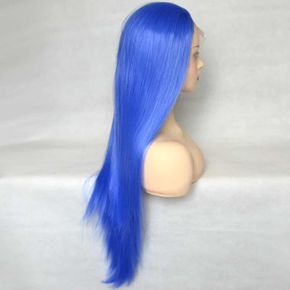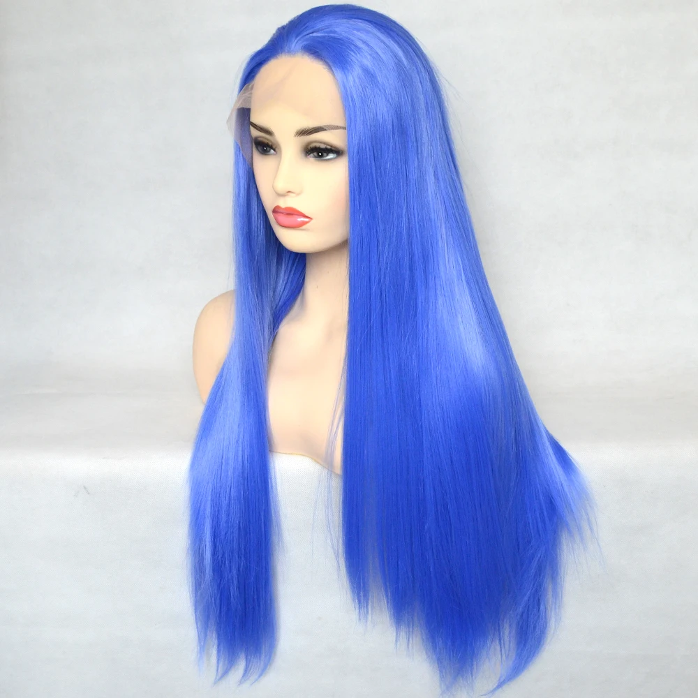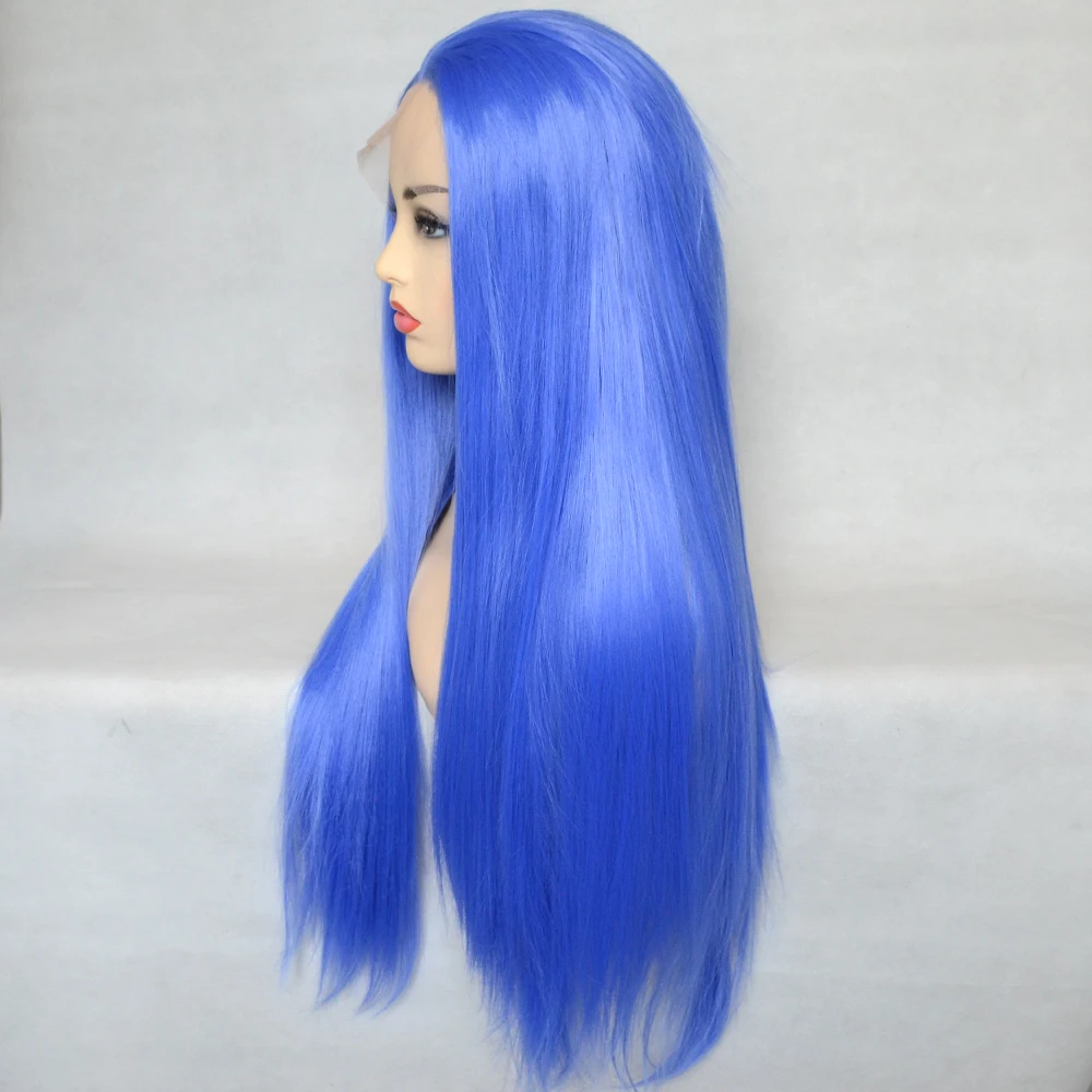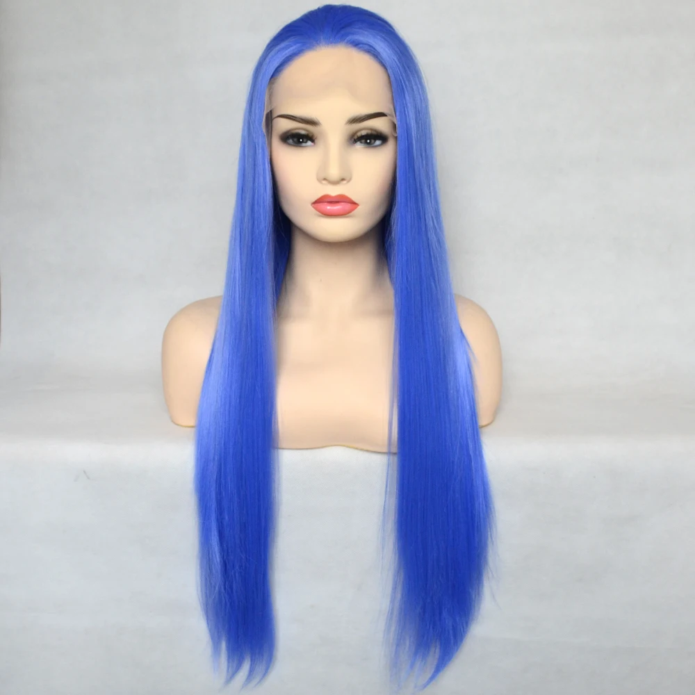 Парик Vogue Queen Небесно-Голубой Синтетический на сетке спереди, Длинные прямые Термостойкие волоконные парики для косплея для женщин