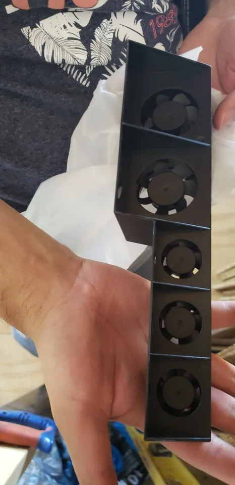 Посылка, безусловно, пришла с некоторым ударом. Вентилятор очень прост в установке, так как он подходит для нескольких вкладок, поддерживающих его и подключаемых к usb-кабелю. Что касается использования, если вы можете сказать, что вы что-то охладили консоль, так как ее функция заключается в том, чтобы помочь получить горячий воздух, не пропустите холодный воздух в консоль. Он издает небольшой шум, так как он имеет определенную вибрацию, возможно, из-за транспортировки, он поговорит с продавцом. Доставка была очень быстрой, я прибыл на неделю раньше, чем указано в Испании.