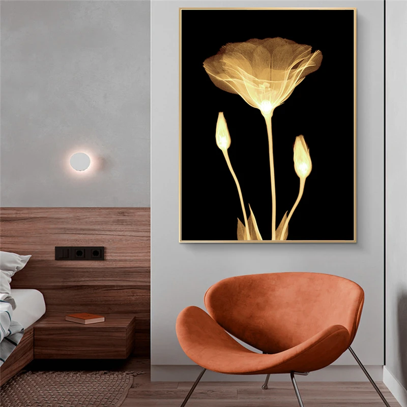 Светильник-желтые цветы, картины на холсте, абстрактные цветы на черном грунте, художественные плакаты, Современные художественные картины для декора гостиной