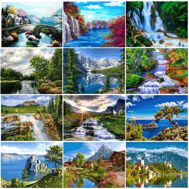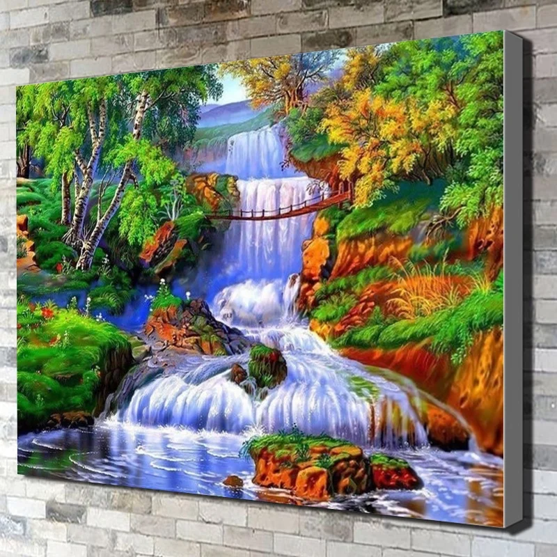 Алмазная живопись 5D с мотивом водопада, Набор для вышивки крестиком, картина из страз, Круглый