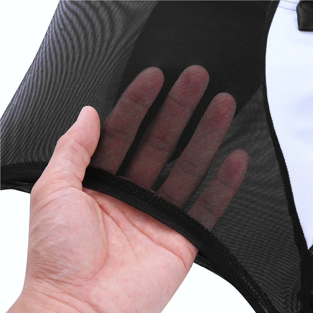 Особенности:Мужской комплект нижнего белья для взрослых, аксессуары для костюма танцора.Воротник на шее с черным милым бантом и двумя манжетами, застежка на крючок и петля.Прозрачные сетчатые трусы, передний чехол с 2 кнопками и бантом, сзади с кроличьими ушками.Изготовлен из комфортного материала, приятного на ощупь, отлично подходит для ночного белья, сюрприза для сна или ролевых игр.Пожалуйста, внимательно проверьте таблицу размеров перед покупкой, ручной и машинной стиркой.
